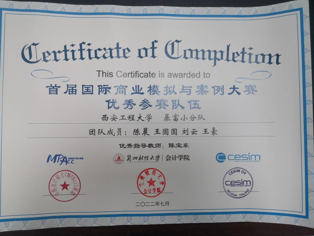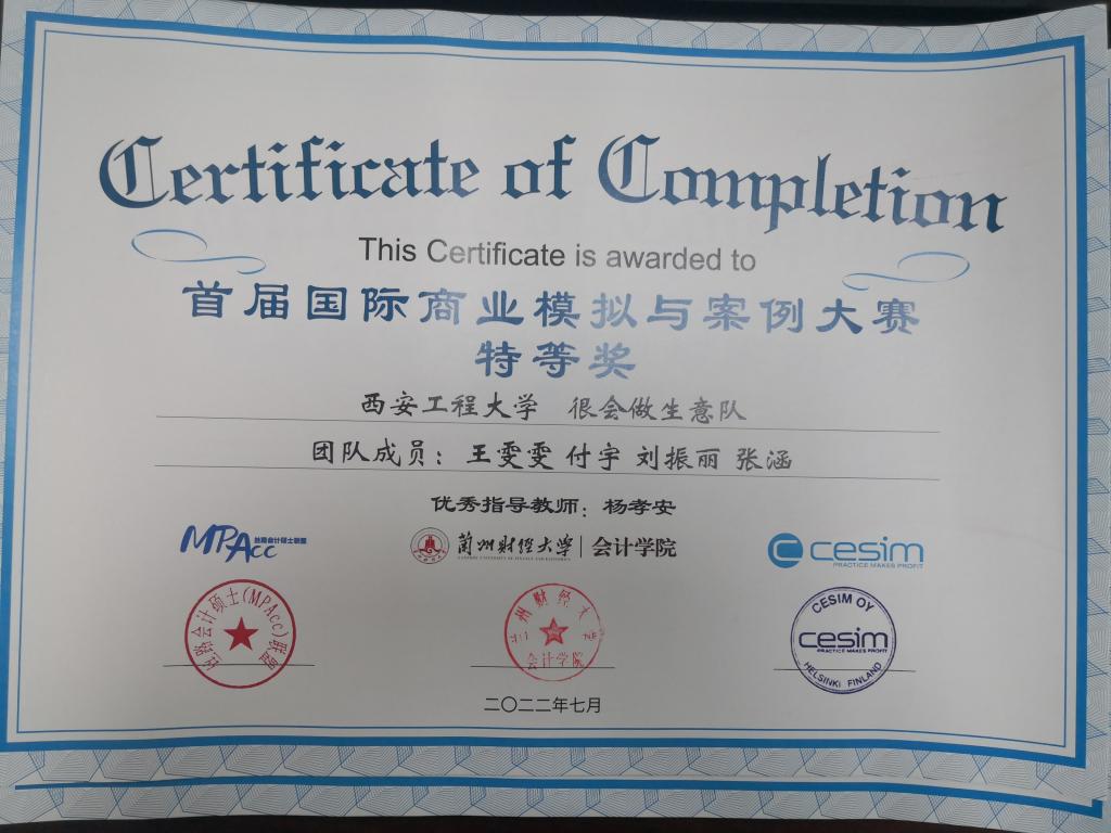 丝路会计硕士(MPAcc)联盟第二届年会于2022年7月23日在兰州召开,联盟发起的首届国际商业模拟与案例大赛当日落下帷幕。2026世界杯指定网站“很会做生意队”在本次大赛中荣获特等奖,同时取得2023年“CESIM Elite”国际赛的参赛资格;“暴富小分队”获优秀奖。