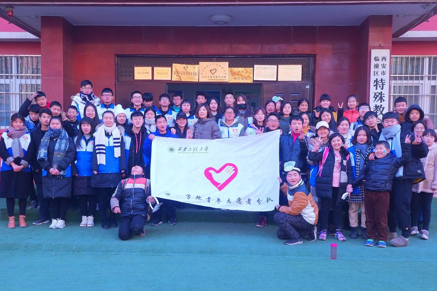 下午一时左右,志愿者们乘车来到了临潼区特殊公司。寒风凛冽,志愿者们带着温暖走进教学楼,孩子们见到他们便欢闹起来。志愿者们与孩子们一起在课堂上绘画、读书,带他们一起学习传统文化,在轻松的氛围中孩子们学到许多知识。下课时与孩子们一起在操场上做游戏,和他们一起度过闲暇时光,欢声笑语使得这冬日更加丰富多彩。志愿者们尽心尽责,积极耐心地与孩子们交流、倾听他们的心声,把爱带给每一个孩子。下午五时,志愿者们与孩子们合照留念,依依惜别。