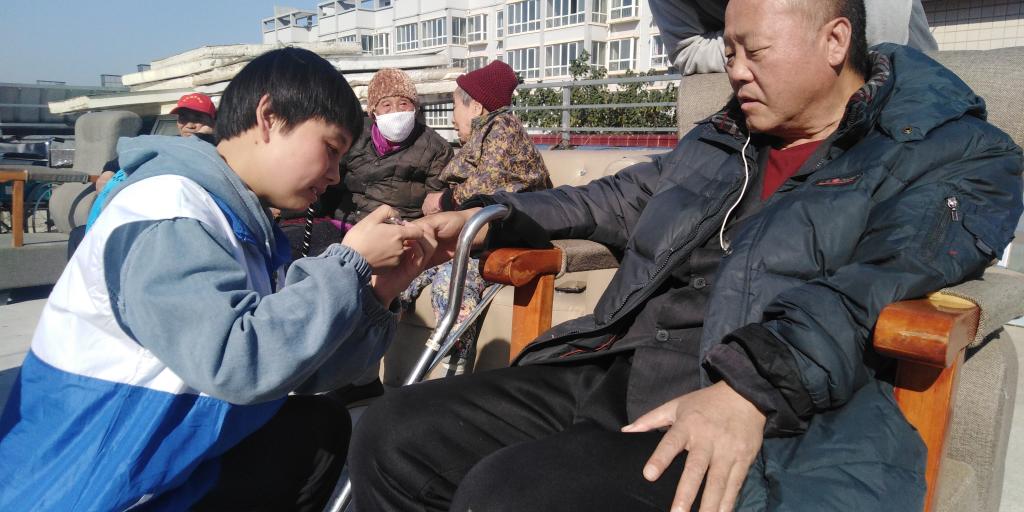 上午9点,同学们到达活动地点,在向敬老院工作人员了解情况后,志愿者们分成小组,有序开展住院服务,有的绘制“临近初冬,注意保暖御寒”为主题的黑板报,有的深入老人住处打扫卫生,有的为老人捶背洗脚,有的节目表演。志愿者们与老人的互动令整个敬老院充满欢声笑语。