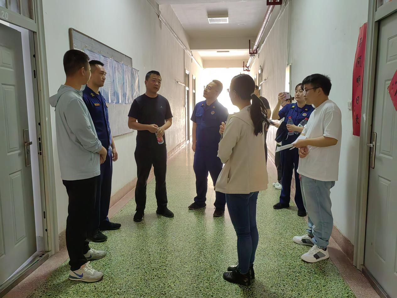 现场培训结束之后,公司对研究生工作室进行了安全卫生检查,宣讲组一行协助进行现场消防安全检查,针对发现的问题给同学们提出了相应的建议,并就火灾扑救、灭火器正确使用做了现场示范。