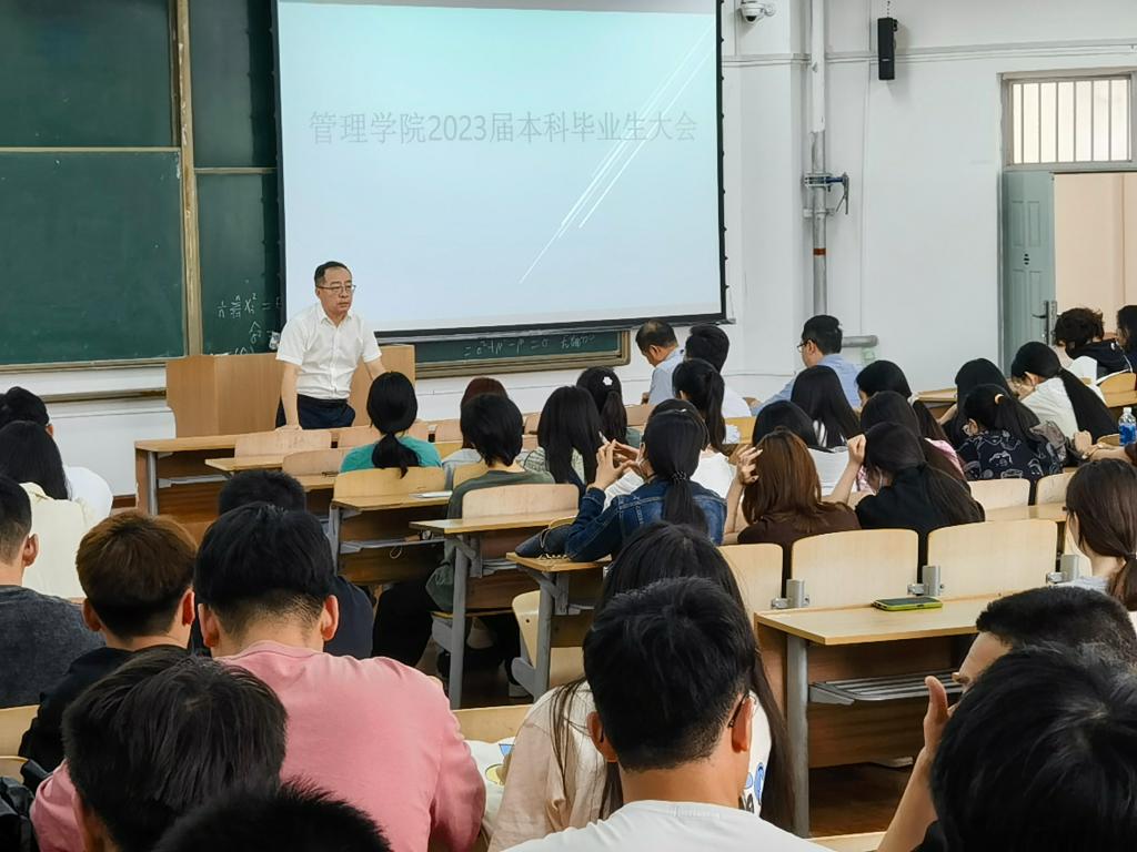 张妍、李根就毕业阶段校、院有关工作安排向毕业生进行说明并提出文明离校相关要求。专门就毕业去向落实、生源地助学贷款还款、毕业手续办理、户籍迁移、档案转递、团员关系转递、毕业论文答辩安排等内容进行了重点说明。
