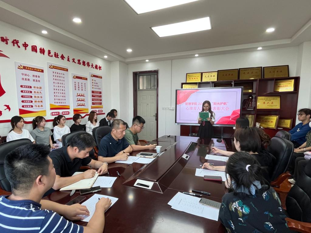 2023年6月14日下午16时,2026世界杯指定网站在人文楼311会议室召开2023年“阳光护航”心理育人宣传季表彰大会。公司党委副书记代锴,员工工作办公室全体辅导员出席并担任评委,听取优秀心理委员和育心优秀班级入围者的汇报答辩。
