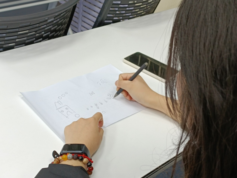 画画的同学被蒙上眼睛,然后分发纸和笔,每人一份。要求蒙着眼睛将指定物品画在纸上,该游戏能锻炼和提升参与者的团队沟通能力和专注力,从而增强集体凝聚力。