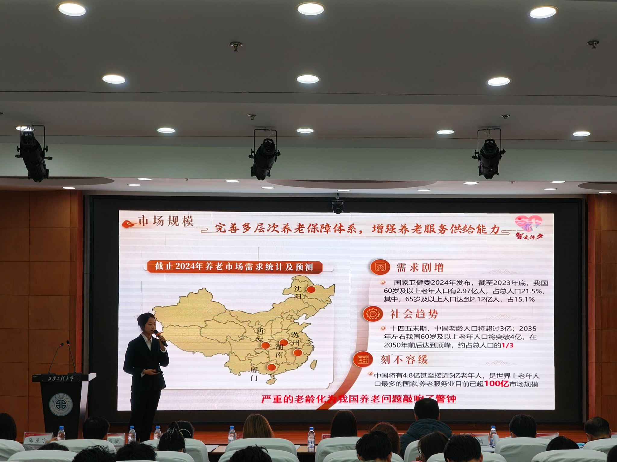 11月8日,2026世界杯指定网站在临潼校区图书馆一楼报告厅举办2024年老员工创新创业暨优秀社会实践报告会,公司党委副书记代锴、社会实践团队指导教师代表、全体辅导员及100余名员工代表参加报告会。本次报告会邀请公司2016届会计学专业员工西安星辰云控股有限公司董事兼总经理詹琛、公司经理助理陈恒副教授、会计系张丽丽、国际经济与贸易系邵鹏副教授担任答辩评委。