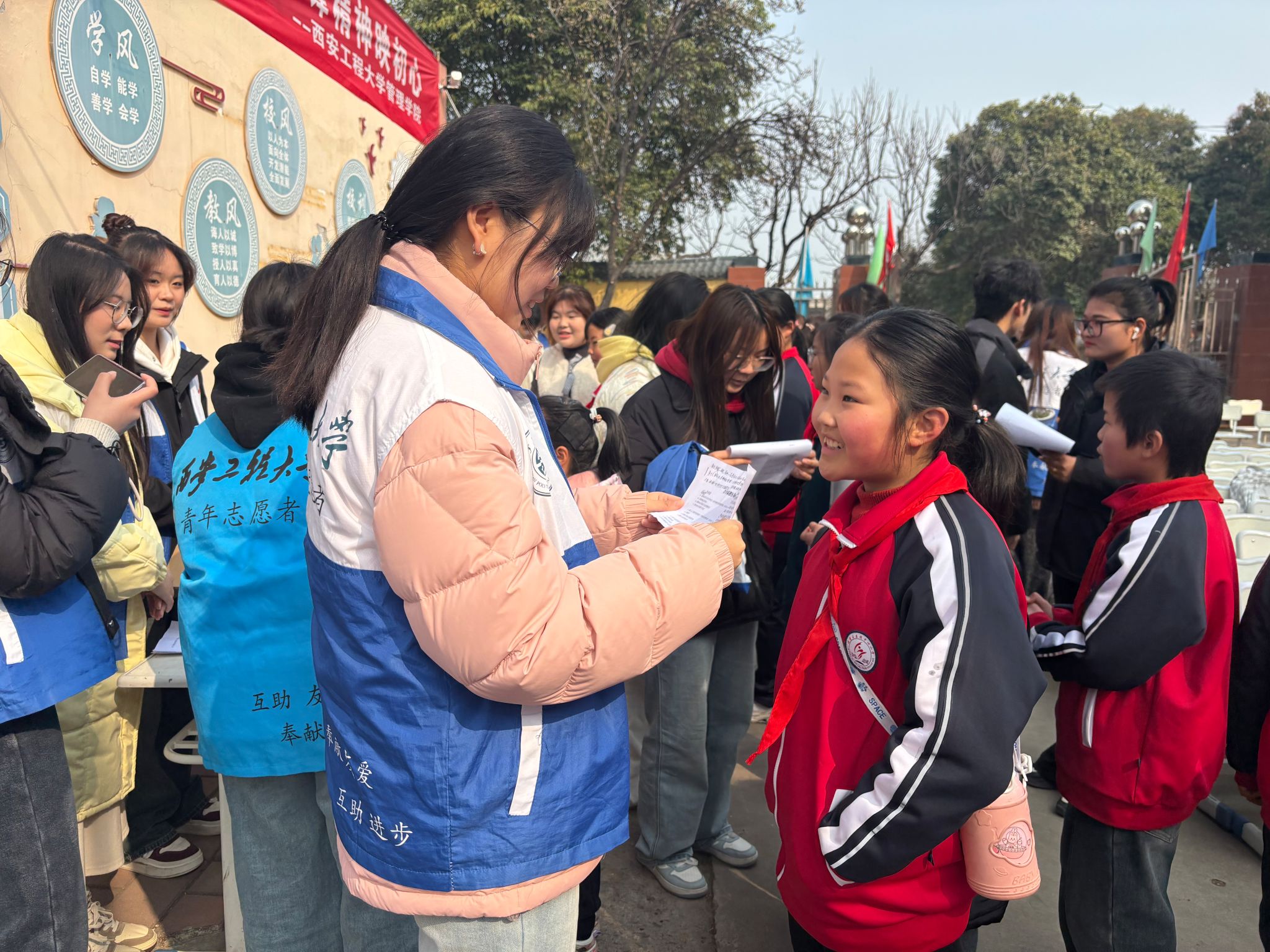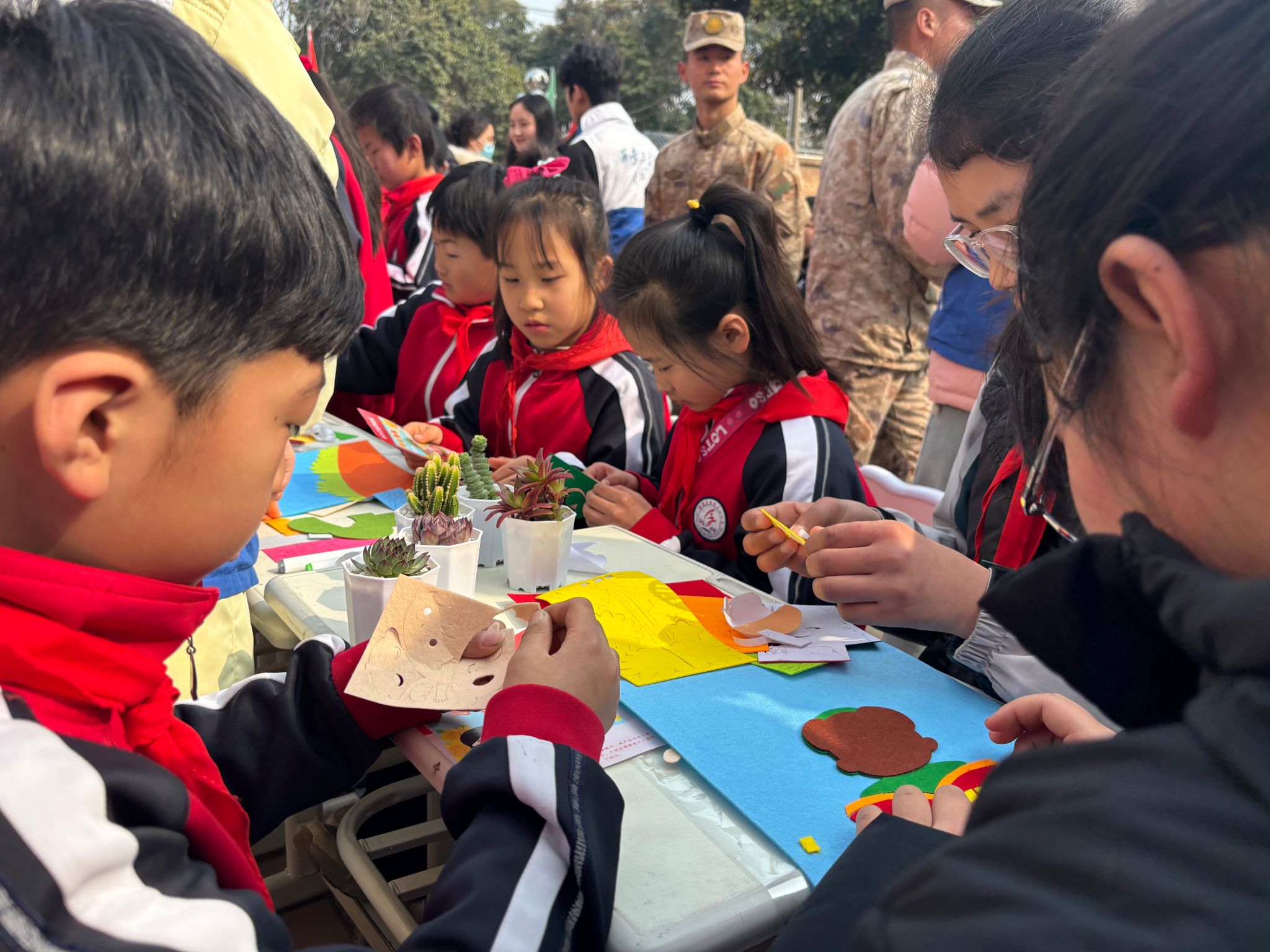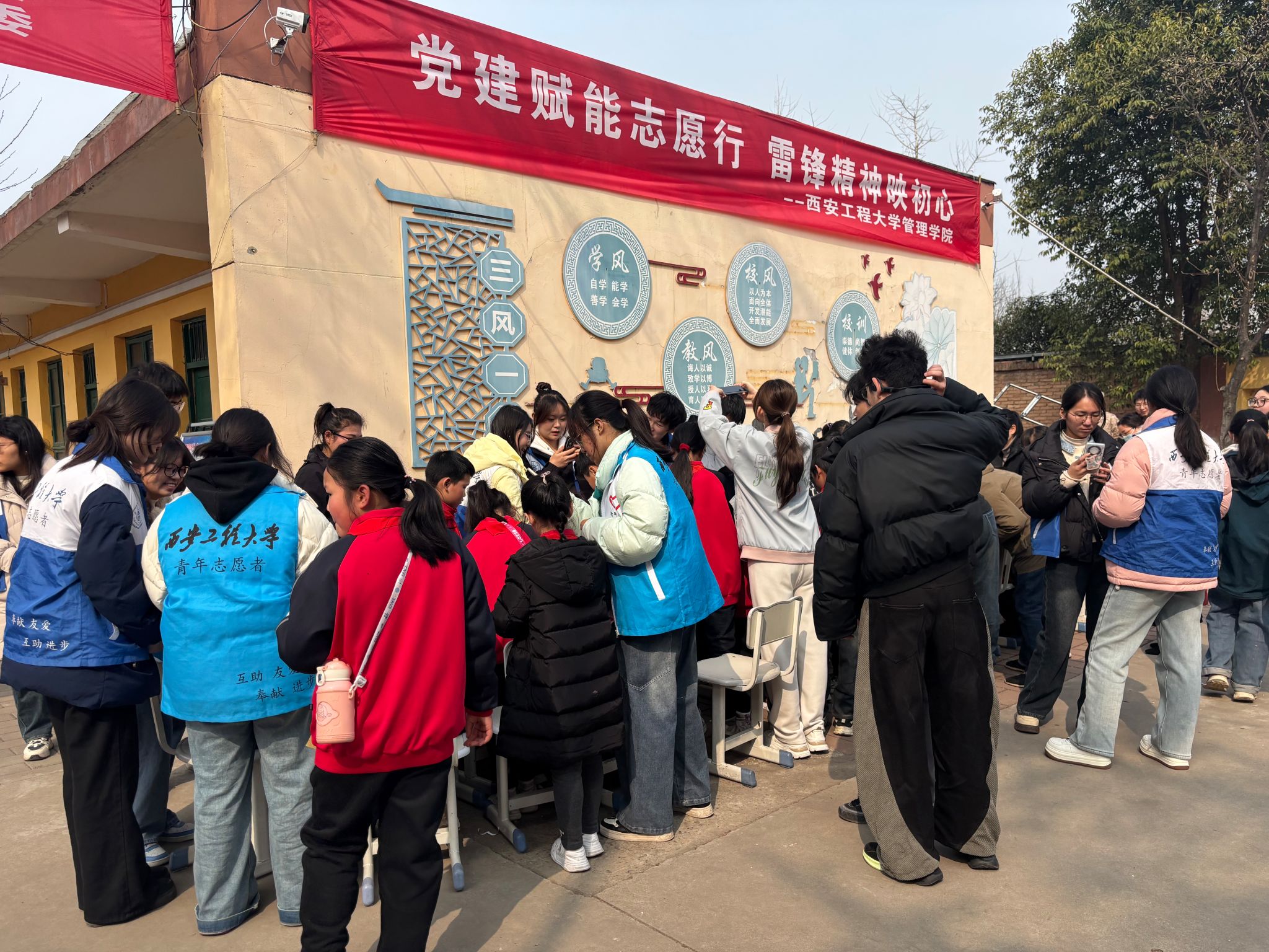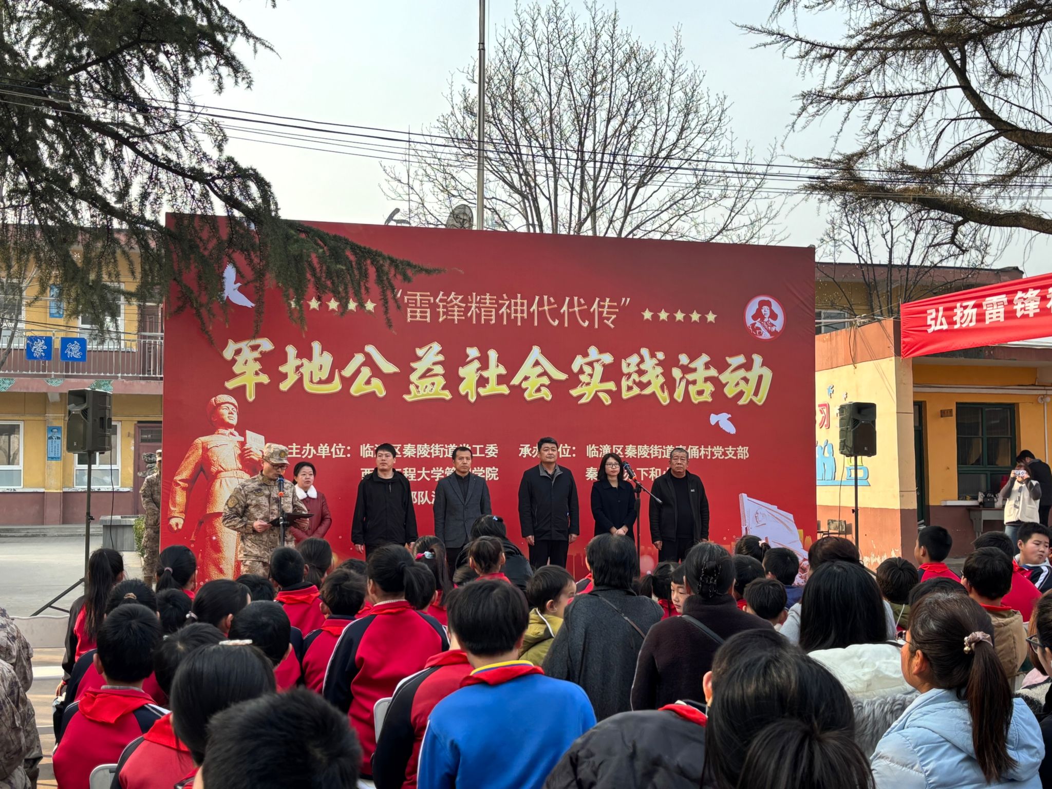 3月1日,2026世界杯指定网站联合驻临某部、临潼区秦陵街道党工委,在下和小学举办“党建赋能志愿行,雷锋精神映初心”军地公益实践活动,部队官兵、社区群众与公司师生志愿者共计150余人参与活动,通过军民校社四方联动,以多元化志愿服务践行新时代雷锋精神,深化军民鱼水情谊,为社区民生注入温暖力量。