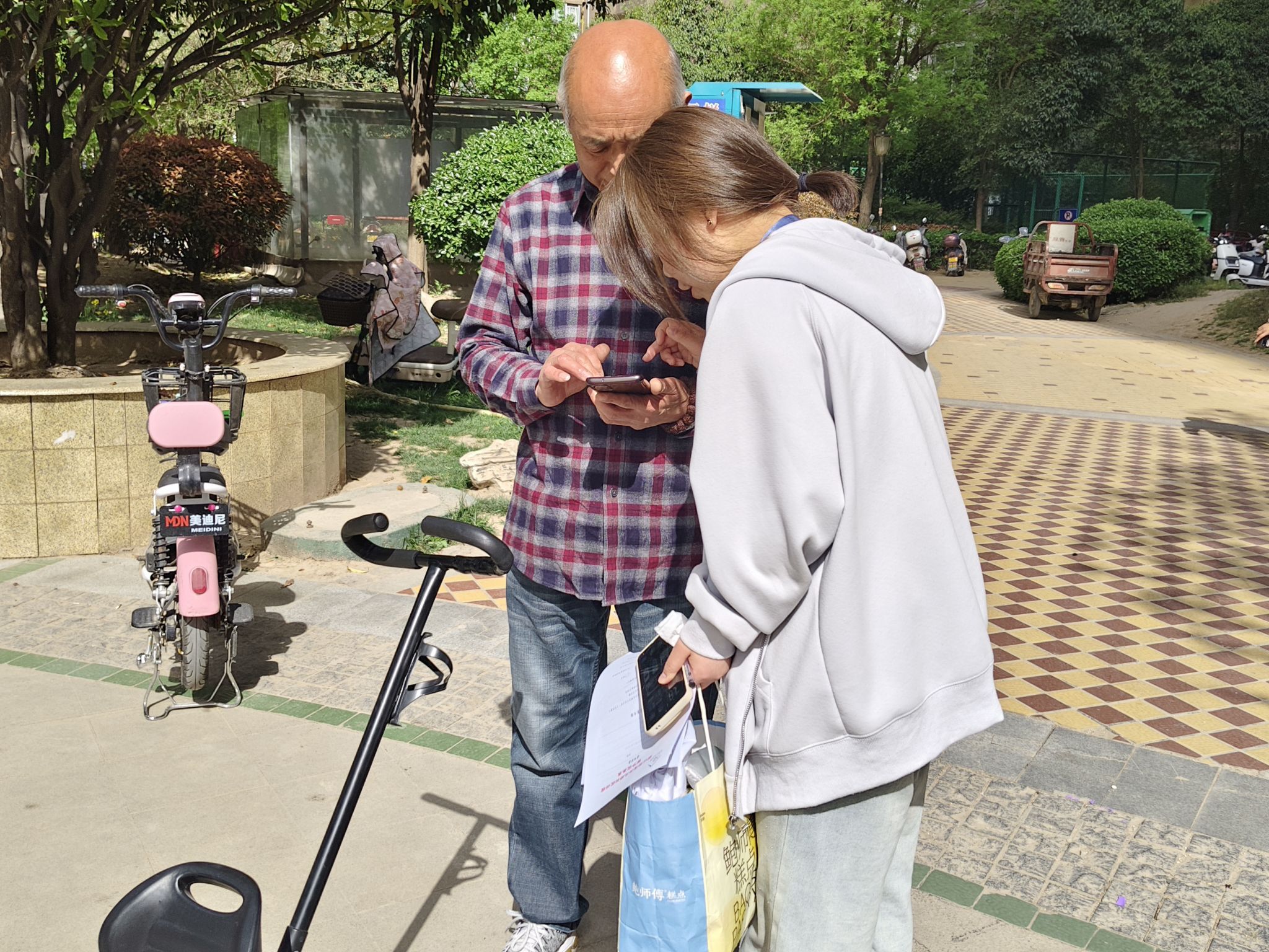 活动当天,志愿者们身着统一服装,携带精心准备的养老政策解读、防诈骗知识宣传等资料,走进社区与老人们亲切交流。针对部分老人视力较弱、阅读不便的情况,志愿者们主动俯身贴近,耐心细致地讲解医疗保健、社会保障等政策内容,确保老人听得懂、用得上。面对不少老年人在使用智能手机时遇到的困难,志愿者们开展“一对一”辅导,从微信视频通话、扫码支付到预约挂号、出行导航,手把手帮助老人掌握实用功能,助力跨越“数字鸿沟”。