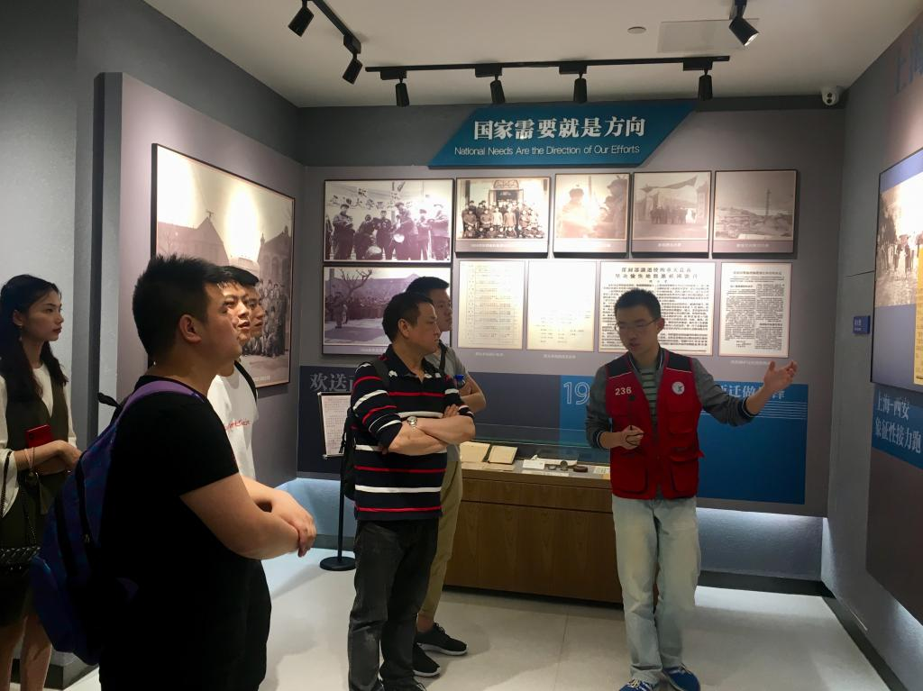 在西迁博物馆志愿者讲解下,大家详细了解了交大西迁的办学史、奋斗史和发展史。展厅分为溯源、西迁和致远三个部分,从溯源南洋到交通大学西迁,“从南洋走来”到“与国家民族同向同行”,从“永远飘扬的旗帜”到习近平总书记对西迁精神重要指示,不同时期的照片、实物、沙盘、影像资料等史料全方位再现了交通大学溯源南洋、致敬西迁和向西而歌的百年峥嵘岁月和光辉历程。
