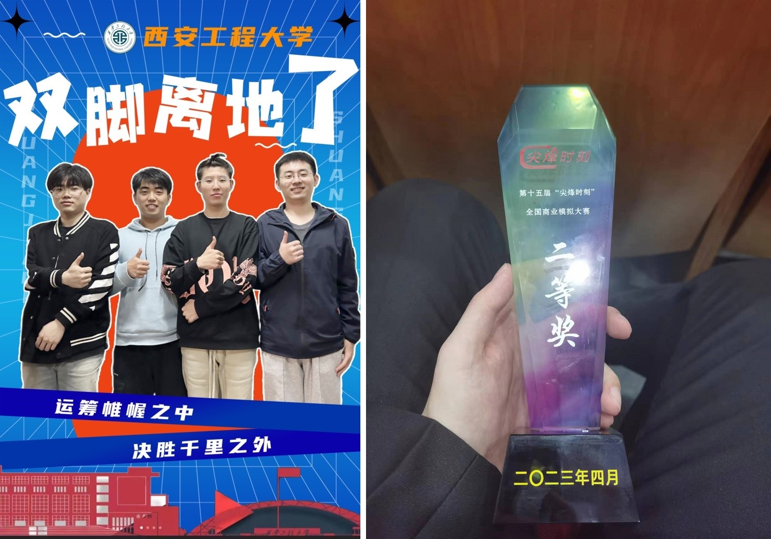 2023年4月21日-23日,长安城润雨如酥。第十五届“尖烽时刻”全国商业模拟大赛总决赛在西安电子科技大学顺利举办。公司2022级MPAcc研究生刘泽林、马超、丁振、孙高飞组成的团队在大赛中获研究生组全国二等奖,指导教师李军训获优秀指导教师称号。
