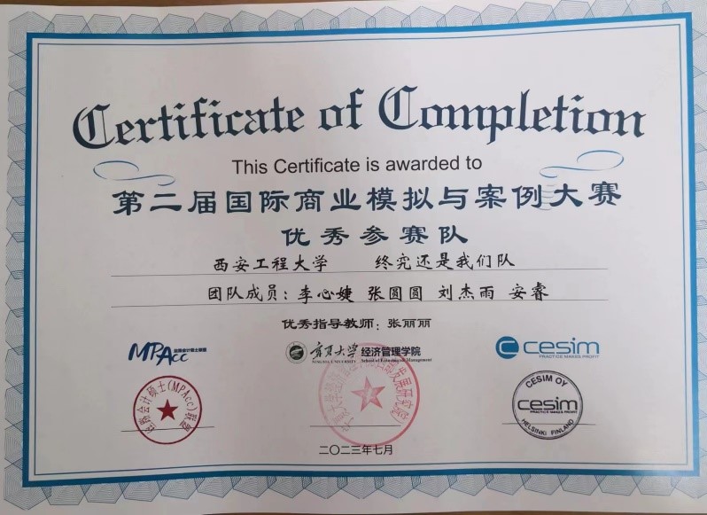 丝路会计硕士(MPAcc)联盟国际商业模拟与案例大赛,旨在以互联网形式,通过高科技平台,实现培养跨界应用型会计人才的目标,2023年举办第二届。4月底启动大赛报名后,公司高度重视,积极动员、协调、组织、指导,MPAcc研究生积极报名。按照赛事规则,每个成员单位报名队伍不超过5支,公司最终有4支队伍成功报名,联盟成员单位共有123支队伍报名参加。经过为期3周时间的激烈角逐,公司杨浩、赵田蕤、李柯蒙、张宇晨组成的“想和评委一队”晋级18强,代表公司参加7月1-2日在宁夏银川举行的总决赛;高泽蓉、程鑫、马星星、张凯淇组成的“这边不用排队”获大赛三等奖;李心婕、张圆圆、刘杰雨、安睿组成的“终究还是我们队”获优秀参赛队称号。