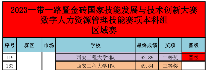 10月14日,公司2022级人力资源管理专业易鑫洋、范香娟等5位同学组成的两支参赛队在郑煜老师的指导下,经过一天紧张激烈角逐,在“2023一带一路暨金砖国家技能发展与技术创新大赛”数字人力资源管理技能赛项(区域赛)中分获团体二等奖、三等奖,其中2队顺利晋级全国总决赛。