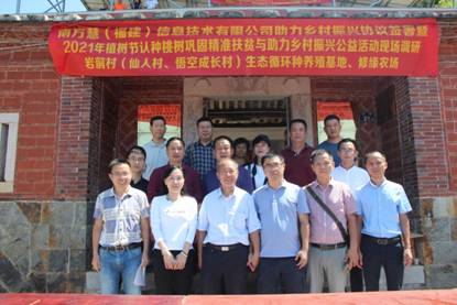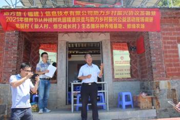 2020年10月2日,安溪县参内镇岩前村大垵21号热闹非凡,安溪县原政协主席苏宇霖、参内镇副镇长吴炫、福州、泉州、安溪墩板村、田底村、南安九埕村、南安市省新满山红下割山村以及本村若干村民共五十多个企事业单位热心人士齐聚于此,共同参与“南方慧(福建)信息技术有限公司助力乡村振兴协议签署暨2021年植树节认种桃树巩固精准扶贫与助力乡村振兴公益活动现场调研”活动,在品尝完当地特色的大米粥和“叶惠治”牌腌制萝卜、藠头、冬菜之后,参与活动的每个人做了简要的自我介绍,紧接着南方慧(福建)信息技术有限公司总经理赖添贵与岩前村(仙人村、悟空成长村)生态循环种养殖基地负责人叶惠治签署了“助力乡村振兴合作协议书”,拟通过生态循环种养殖基地为岩前村乡村振兴提供专利申请、商标注册、高新技术辅导、财务管理等各种优惠服务,并且力争为岩前村农产品的销售提供更多的人脉资源助力乡村振兴。之后,南方慧(福建)信息技术有限公司赖总、福建群英之家投资有限公司董事长(群英众创空间创始人)范良杰、福建誉神健康科技有限公司董事长柯峰当场认领拟于2021年植树节组织的认种桃树巩固精准扶贫与助力乡村振兴公益活动中的五颗桃树,并当场为修缘农场的开业正式揭牌,该农场是本次活动孵化的一家农民经营实体,也是福州大学党建绿色“创新创业”产业帮扶助力乡村振兴模式提炼之后孵化的第一家农民经营实体。最后,安溪县原政协主席苏宇霖、参内镇副镇长吴炫分别做了总结性发言,高度肯定了本次活动的社会价值和经济效益。