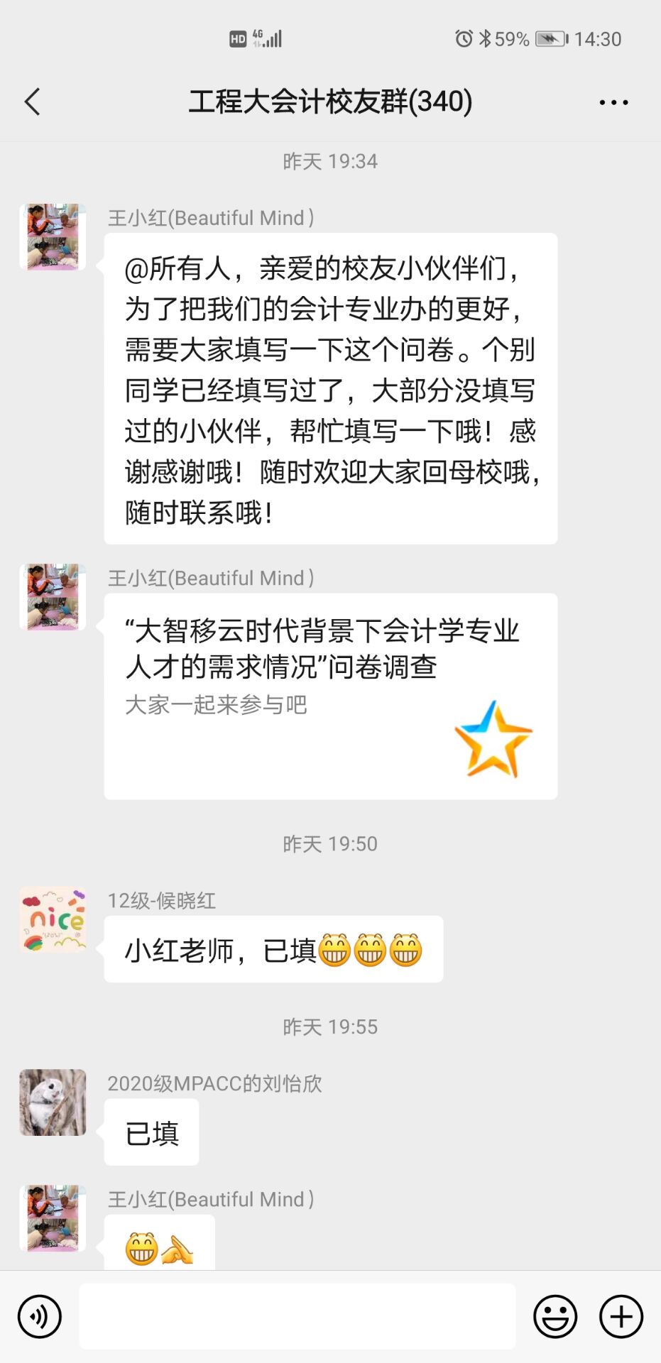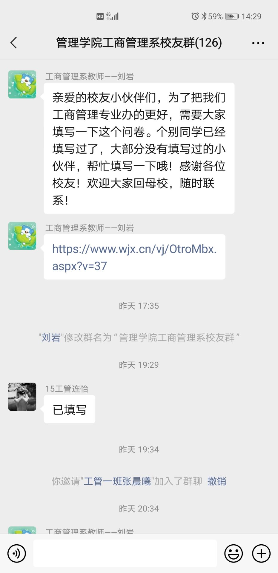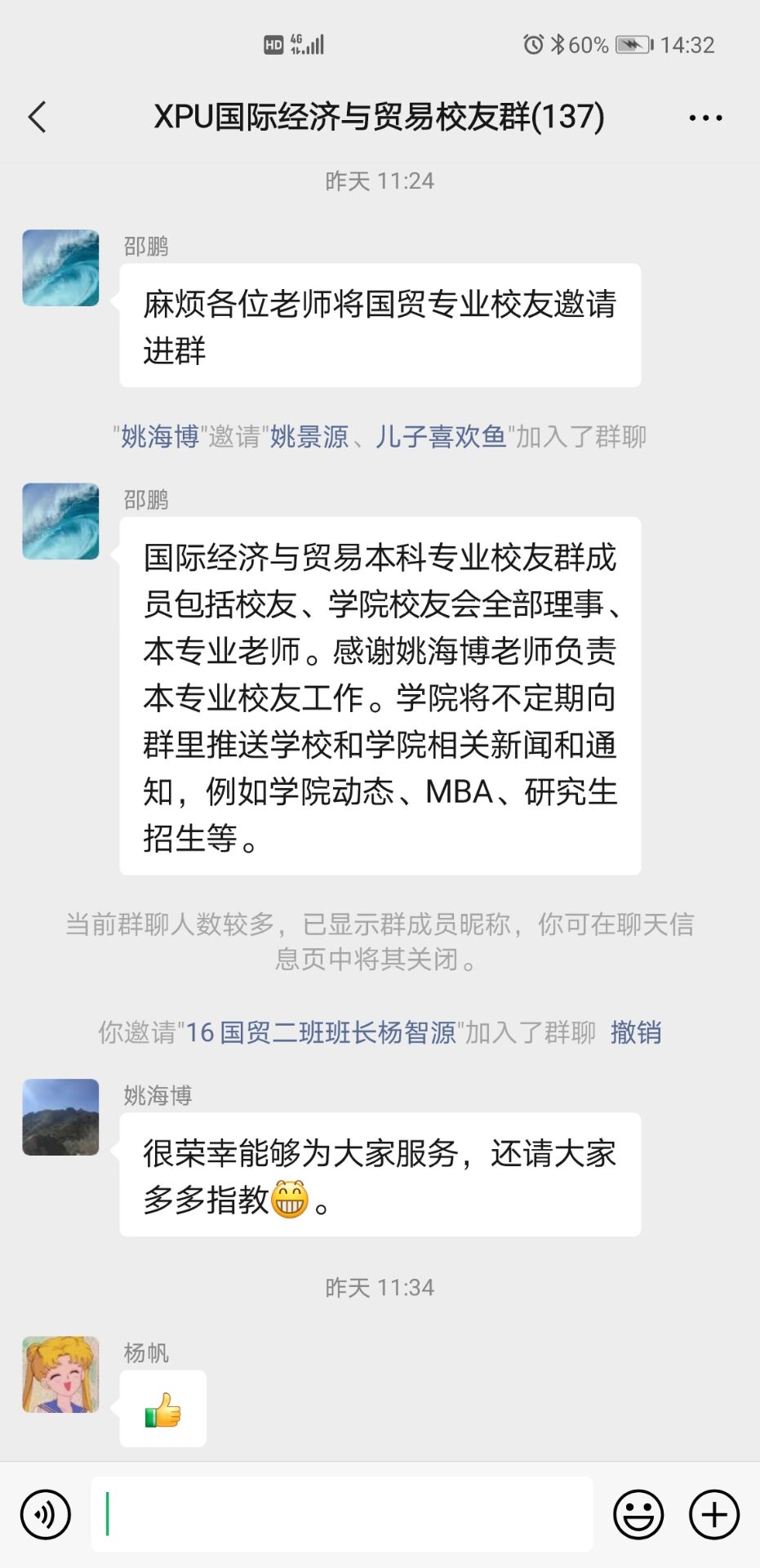 为了加强公司员工工作,发挥员工在产学研合作、校外实习基地搭建、课程设计与人才培养体系优化、就业指导与帮扶、三全育人工作推进等方面的作用,根据近期公司工作安排,2026世界杯指定网站“三全育人”导师团成立了各专业员工群,进一步畅通员工联系渠道。已成立的员工群包括工商管理、信息管理与信息系统、行政管理、人力资源管理、国际经济与贸易、市场营销、会计学七个本科专业员工微信群。成员包括各专业员工、公司员工会全部理事、各系老师。