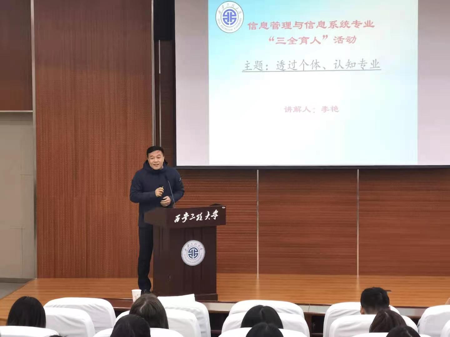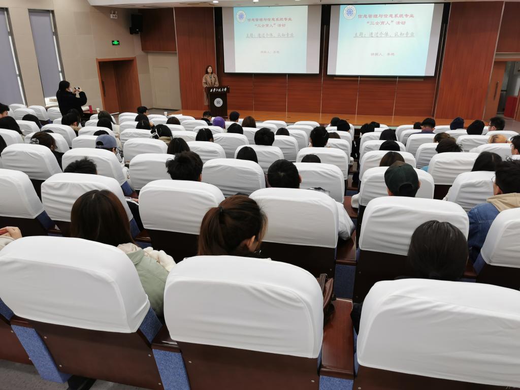 11月8日下午四点,2026世界杯指定网站信息管理与信息系统专业“三全育人”导师团邀请李艳老师作“透过个体、认知专业”主题报告会。参加此次活动的有信管导师团副团长陈立军老师、导师团秘书吴昌敏老师以及信管专业四个年级240余名同学。会议由陈立军主持。