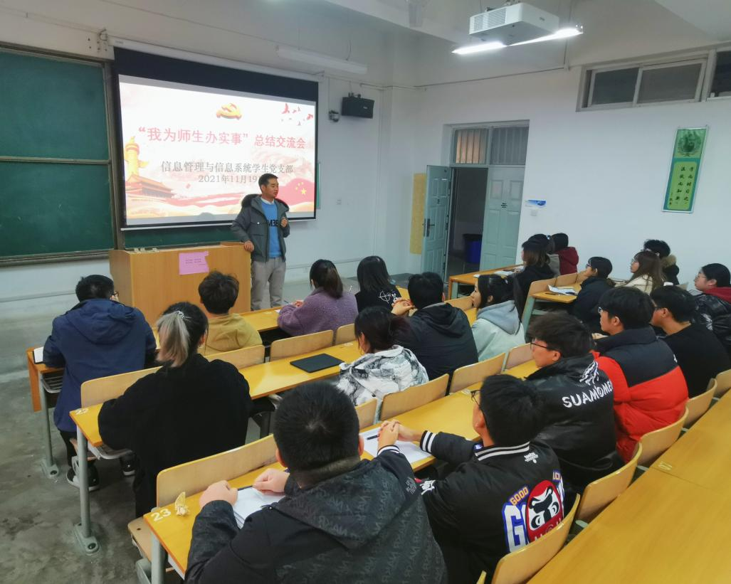 2021年11月19日,信息管理与信息系统“三全育人”组织开展“我为师生办实事”主题总结交流会。信管管业全体党员,发展对象,积极分子参加了此次会议,会议由导师团秘书、党支部书记吴昌敏主持。