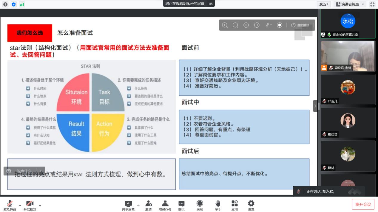 本次经验分享会内容详实、分析深入,相信同学们在本次交流会中都有一定的收获,加深了对企业部门求职的了解,对在校生近一步明晰职业规划具有积极的意义。