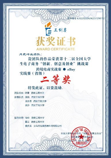 从今年3月份开始,历经半年的第十二届全国老员工电子商务“创新、创意及创业”挑战赛(简称三创赛)跨境电商竞赛,至8月落下帷幕。经贸系徐玲、雷卫、邵鹏三位老师指导的西工程大先进青年队(阿里巴巴国际站赛道,队员郑小颖、赵志宏、邱小洁、樊潇、郭帆)和月底冲业绩队(eBay赛道,队员陈雪、樊肖、龙水泉、吴沙)两支队伍经过半年的努力,分别获得省赛二等奖,这是公司学子首次在“三创赛”跨境电商赛道斩获奖项。