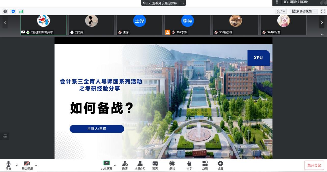 2022年12月8日2019级会计三班以线上方式组织了“会计专业三全育人导师团系列活动——如何备考?”主题班会,会议由班主任王译老师主持,三班全体同学参会。