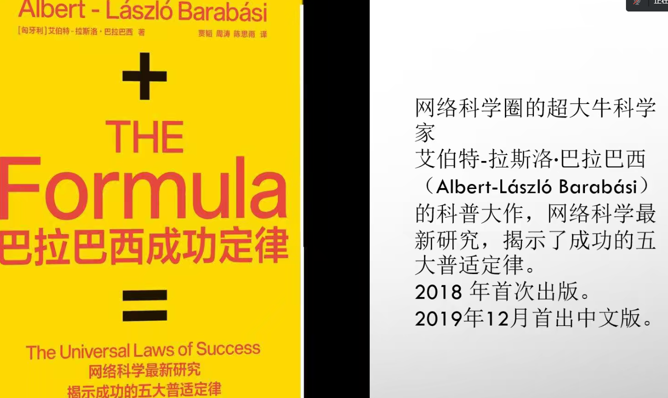 王涵讲述了由艾伯特-拉斯洛-巴拉巴西科学家提出的巴拉巴西定律,引出关于能力与成功关系这一话题。能力驱动成功,而成功可以发生在任何年龄以及时间,成功在于坚持不懈。