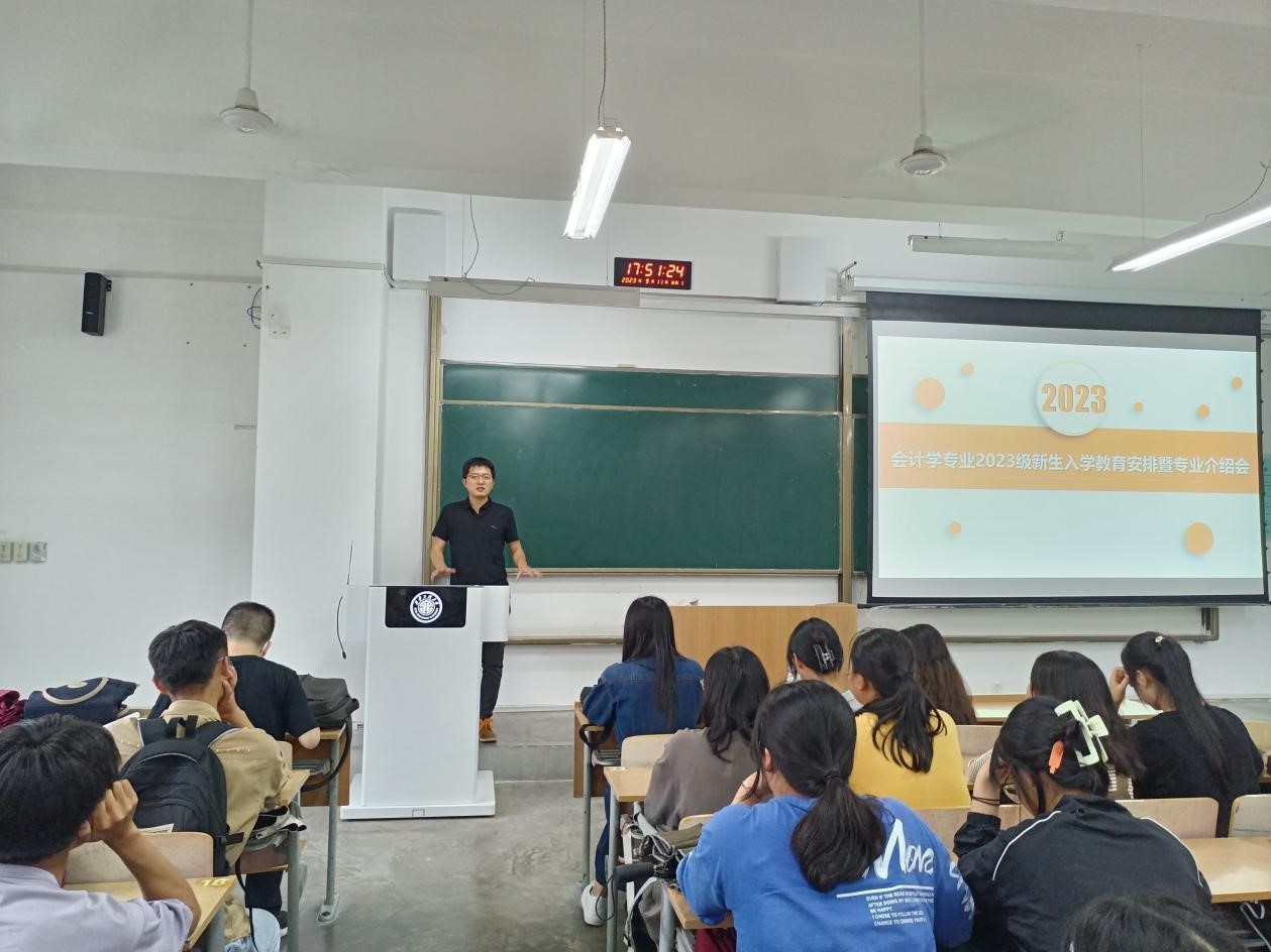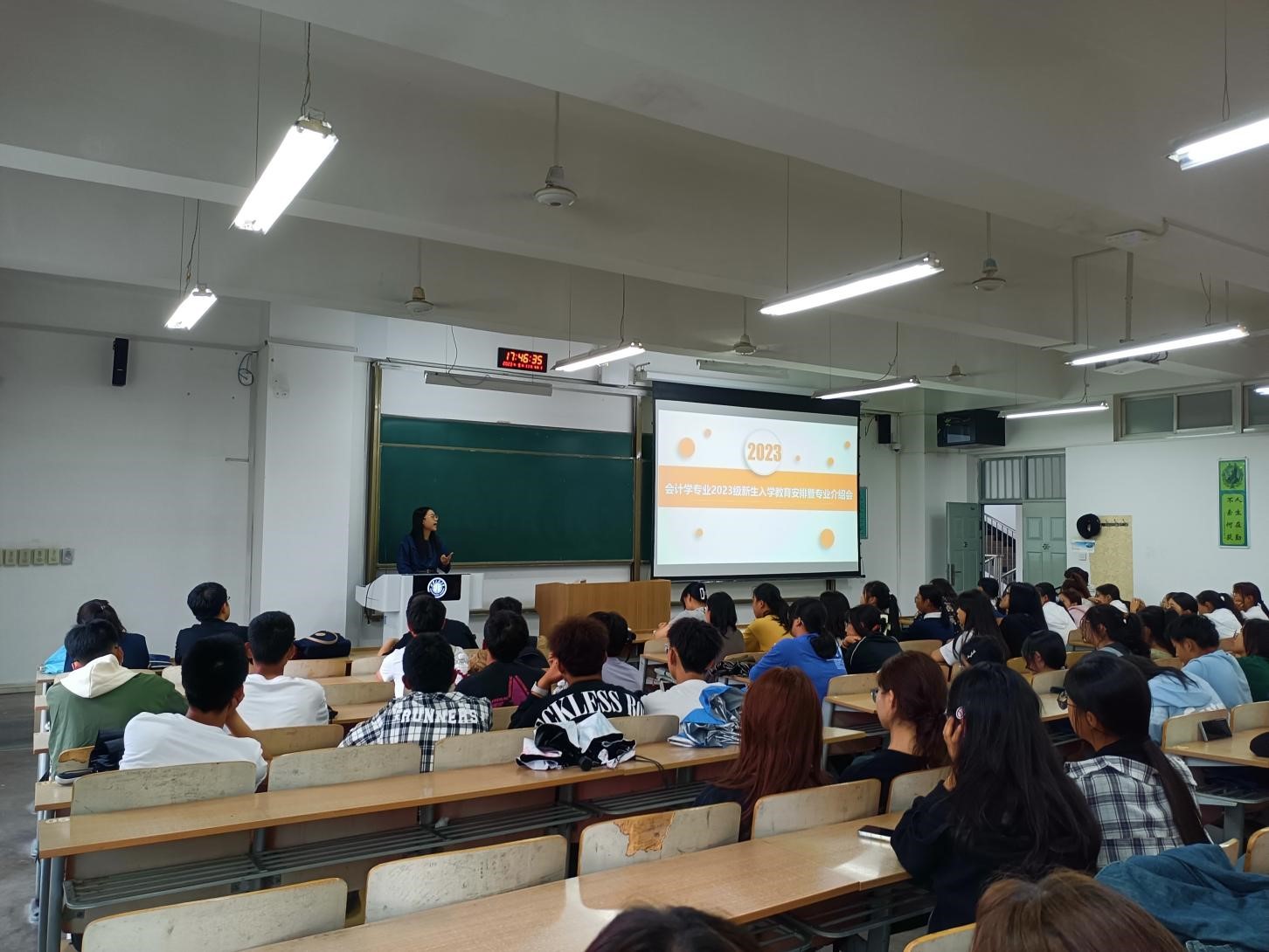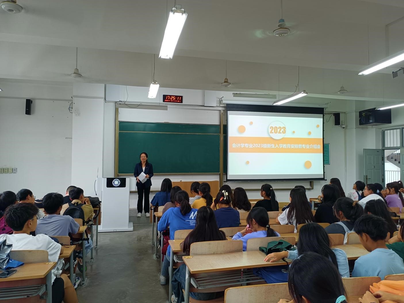 为帮助本科新生更快融入老员工活,9月11日下午会计学专业在教室A306举行了新生入学教育,会计系主任王小红老师、陈宝东老师、孟亚丽老师、李蒙老师出席此次见面会,2023级会计学专业全体新生参加此次见面会。