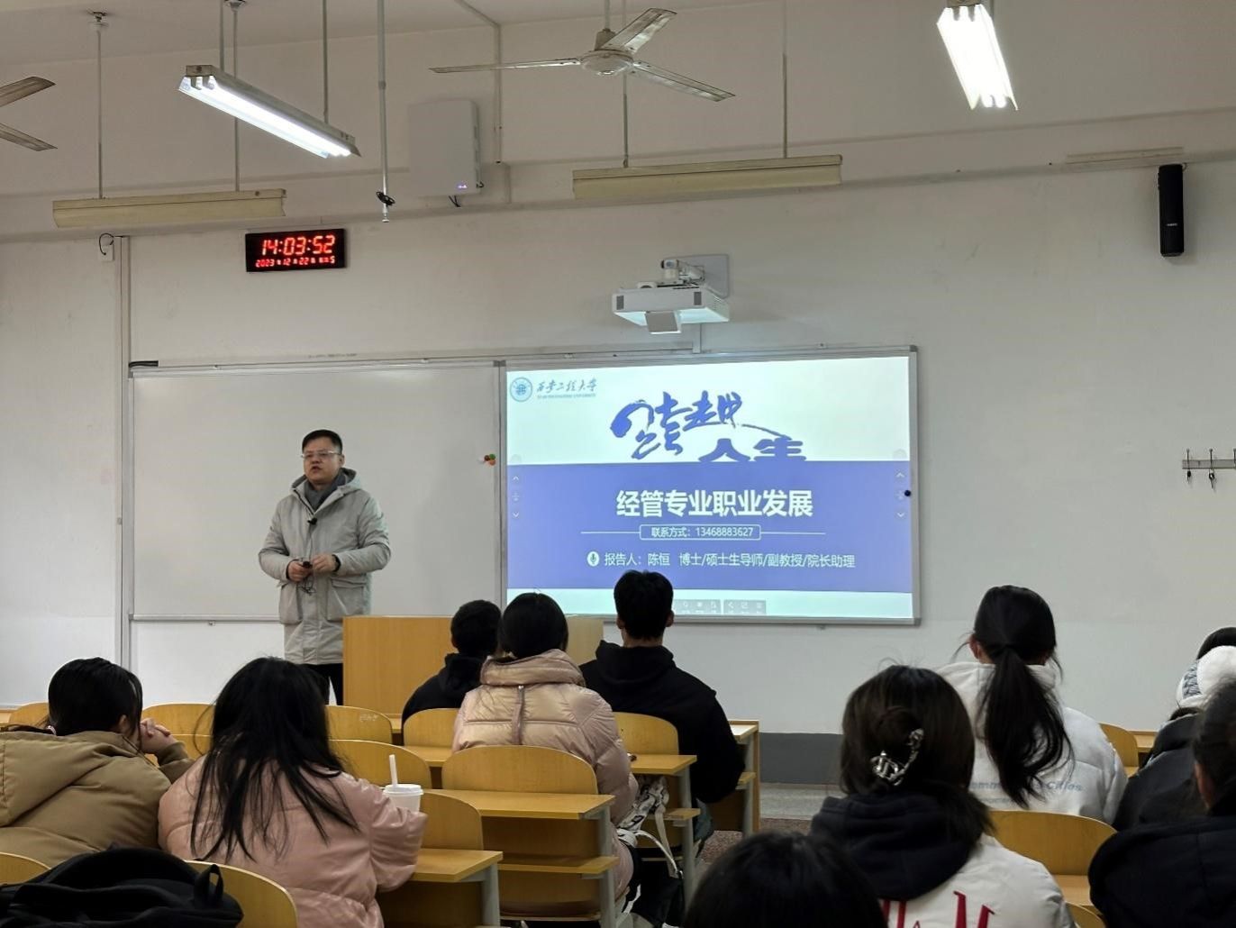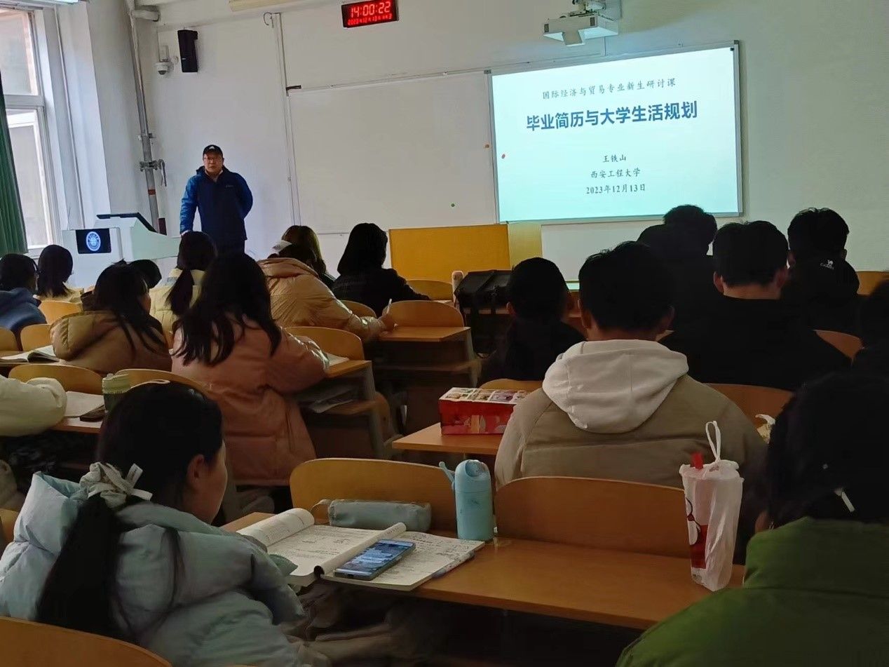 年关将至,微风渐寒。为提高员工职业规划能力和求职能力,更好地适应当下就业形势,引导新生科学合理地筹划大学四年的学习生活,国际经济与贸易专业在临潼校区C170教室面向本专业2023级全体员工开展了“三全育人系列讲座活动”。讲座邀请本专业王铁山、姚海博、王涵、陈恒四位老师,围绕“老员工活与职业规划、专业认知、论文写作和如何定义成功”等主题,为员工们带来了不同维度的“知识盛宴”。