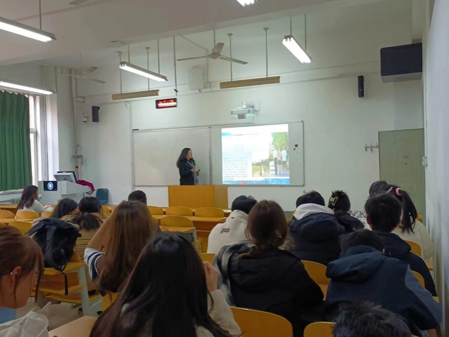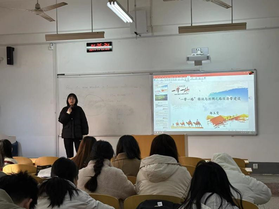 郑玉雯从陕西西安说起,指出西安是“一带一路”建设中重要的节点城市,展开对一带一路建设、陆上丝绸之路和海上丝绸之路的基本介绍。然后,她通过分享自己与哈萨克斯坦职工的交流经历,向同学们阐释了国家在“一带一路”建设方面取得的丰硕成果。