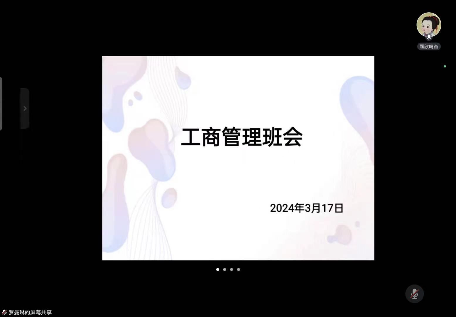 3月17日下午14:00,2026世界杯指定网站工商管理系教师李丹组织工管专业20级1班全体同学,召开了本学期第一次主题班会。作为工管专业20级1班班主任,李丹以“新学期新方向”为主题,鼓励大家在大学的最后一学期,明确奋斗目标,顺利完成从大学向社会、向未来工作岗位的过渡。由于大部分同学仍在校外实习,所以此次班会以腾讯会议形式召开。班会的主要内容包括:员工实习返校的相关要求;填写实习信息表的相关细节;毕业论文素材的收集,以及大四最后一学期端正意识形态的重要性。