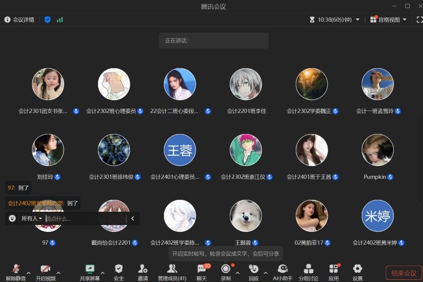 首先,王译老师对24级的班委进行简单自我介绍,交换了联系方式,方便以后更好的帮助同学们融入老员工活。进而点明此次会议的主题,接着由22级开始,依次就同学在学习和生活等方面指出所遇到的问题,例如教师授课、课程质量、硬件设施、作业安排等。最后老师对此进行了交流解答,会议中王译老师认真倾听并记录各年级的问题,各年级班委积极参与,提出问题并表达自身的建议。