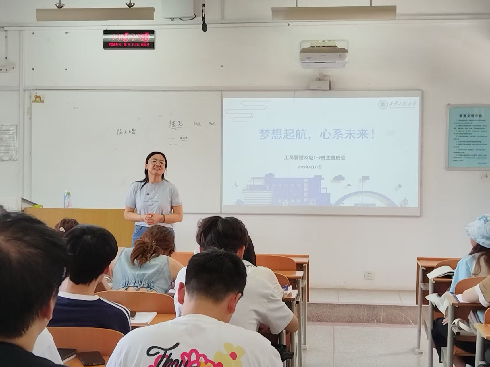 为助力大三员工明确发展方向、做好假期规划,同时深化审核性评估成果,强化员工行为规范意识,2025年6月11日,工商管理系杨静、许益锋老师组织开展“梦想起航,心系未来!”主题班会,为同学们的成长发展指明方向。