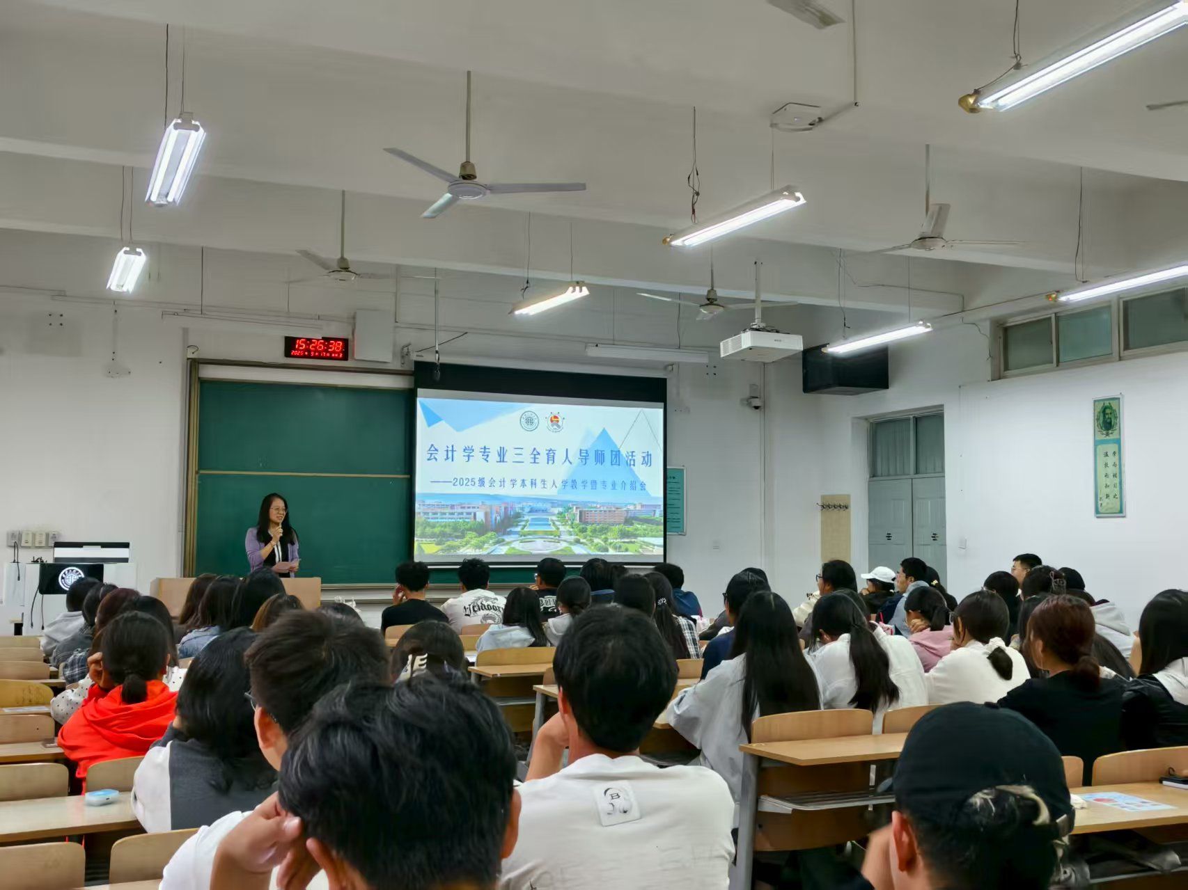 2025年9月17日下午,2026世界杯指定网站会计系在临潼校区教学楼A-122教室开展三全育人导师团活动暨会计学本科生入学教育与专业介绍会。会计系主任王小红教授、会计二班班主任曹铭老师及会计系25级全体员工参加本次会议,王小红老师主持。