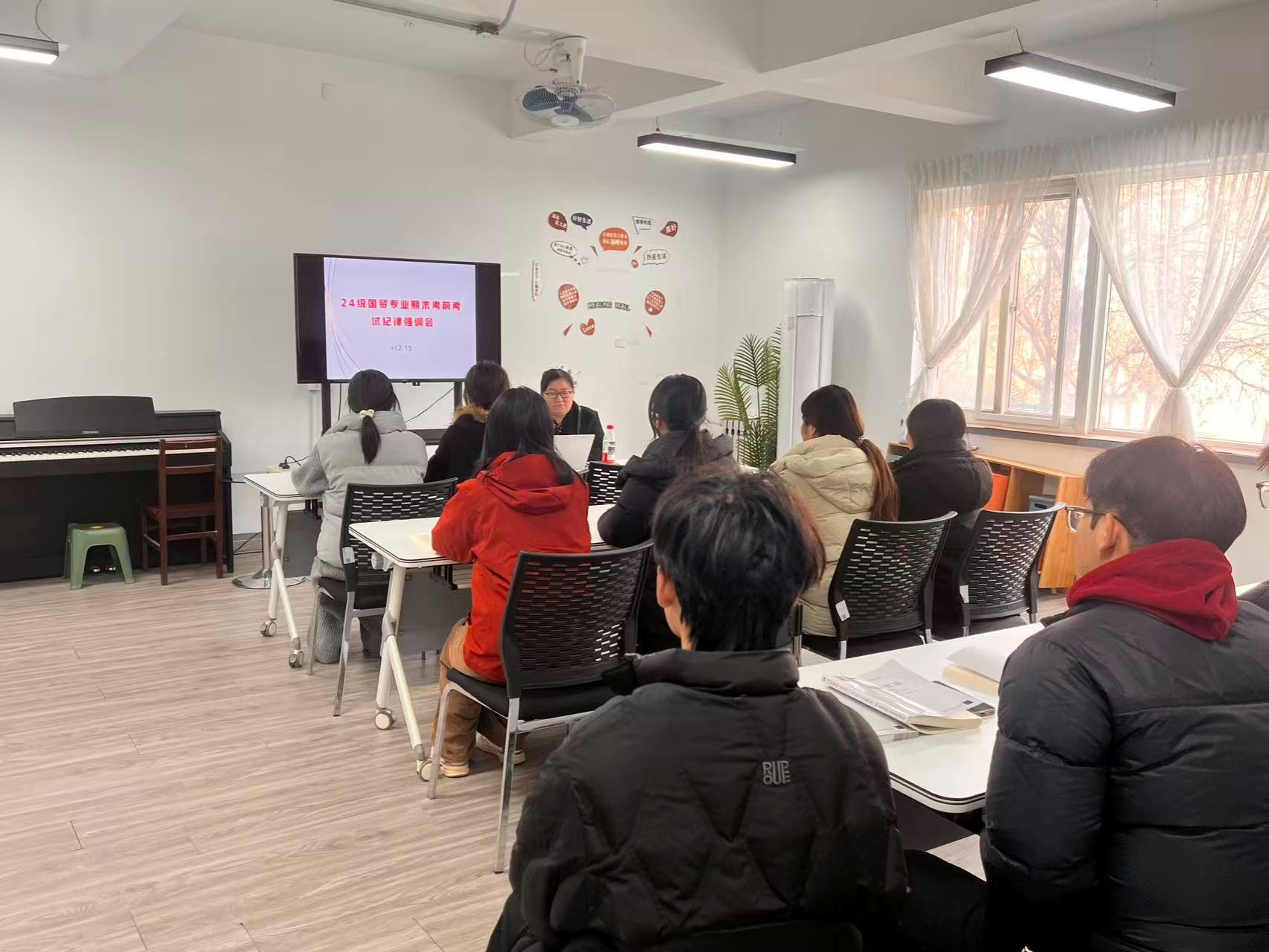 在考风考纪强调环节,刘世铎老师通过真实案例剖析,详细解读公司考试违纪处分规定,明确作弊行为对学业档案、个人诚信记录的恶劣影响。;刘老师特别指出,诚信是国贸人未来从事跨境贸易、国际金融工作的立身之本,希望同学们以考风考纪为准绳,用真实成绩检验一学期的学习成果。