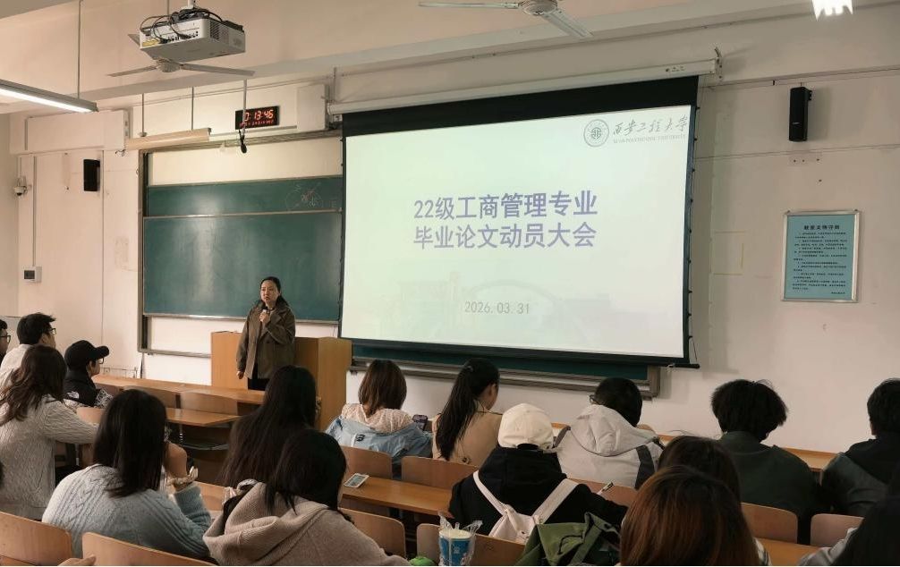 为扎实推进22级工商管理专业毕业论文工作,明确毕业论文写作规范与时间要求,助力员工顺利完成学业,工商管理专业三全育人导师团于2026年3月31日在临潼校区D-3112组织召开了22级毕业论文动员大会。22级工商管理专业员工及相关指导教师参加了本次会议。