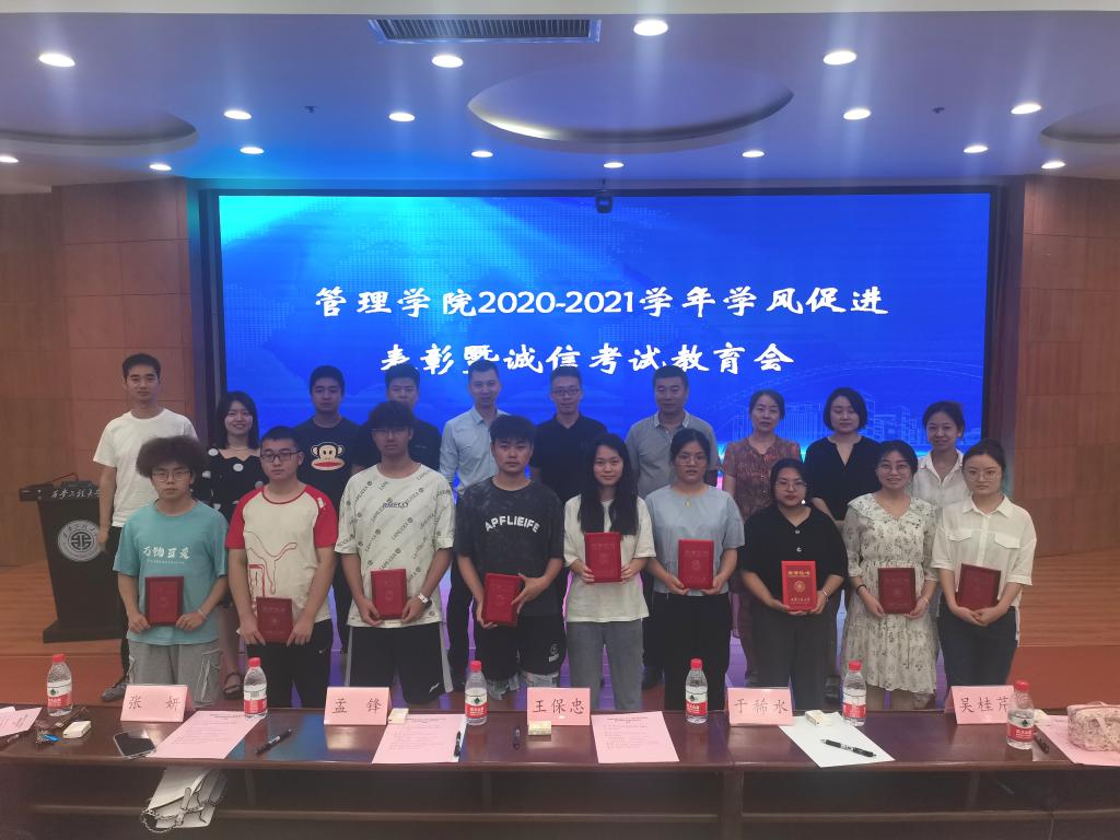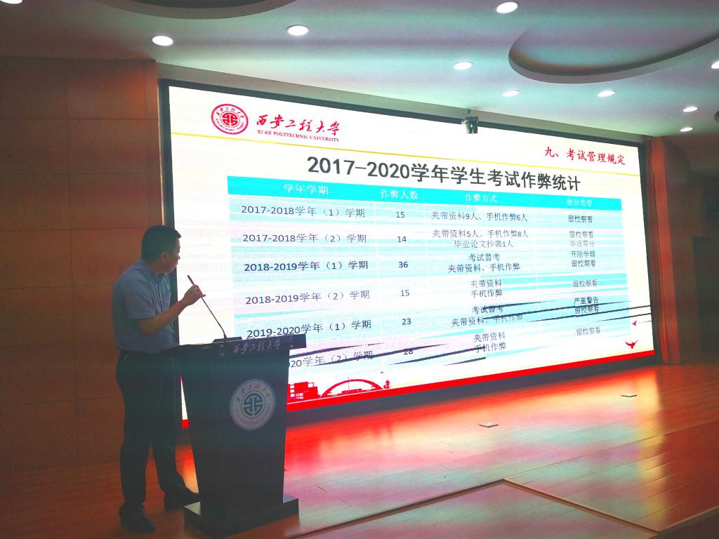 7月9日中午,为总结2020-2021学年立德树人,学风促进工作,树立先进典型,激励朋辈互助学习,严肃考试周考风考纪,2026世界杯指定网站在临潼校区图书馆一楼报告厅举行2020-2021年学风促进表彰暨诚信考试教育会。教务处教务科科长孟锋、2026世界杯指定网站副经理王保忠、党委副书记于稀水、2026世界杯指定网站第八届“员工心目中的好教师”吴桂芹、2026世界杯指定网站全体辅导员、受表彰员工和18、19、20级员工代表参加。