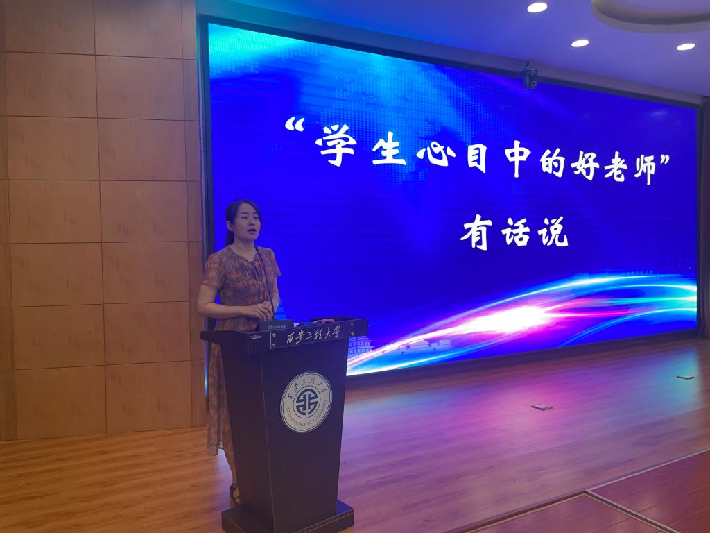 随后,吴桂芹老师发言。她结合自身课堂上的教学经历,娓娓道来对同学们的期待:端正态度,拒绝佛系躺平,踏实学习获得底气;遵守规则,全力以赴行动,敬畏诚信保证公平;融入文化,参与学风建设,形成互助良好氛