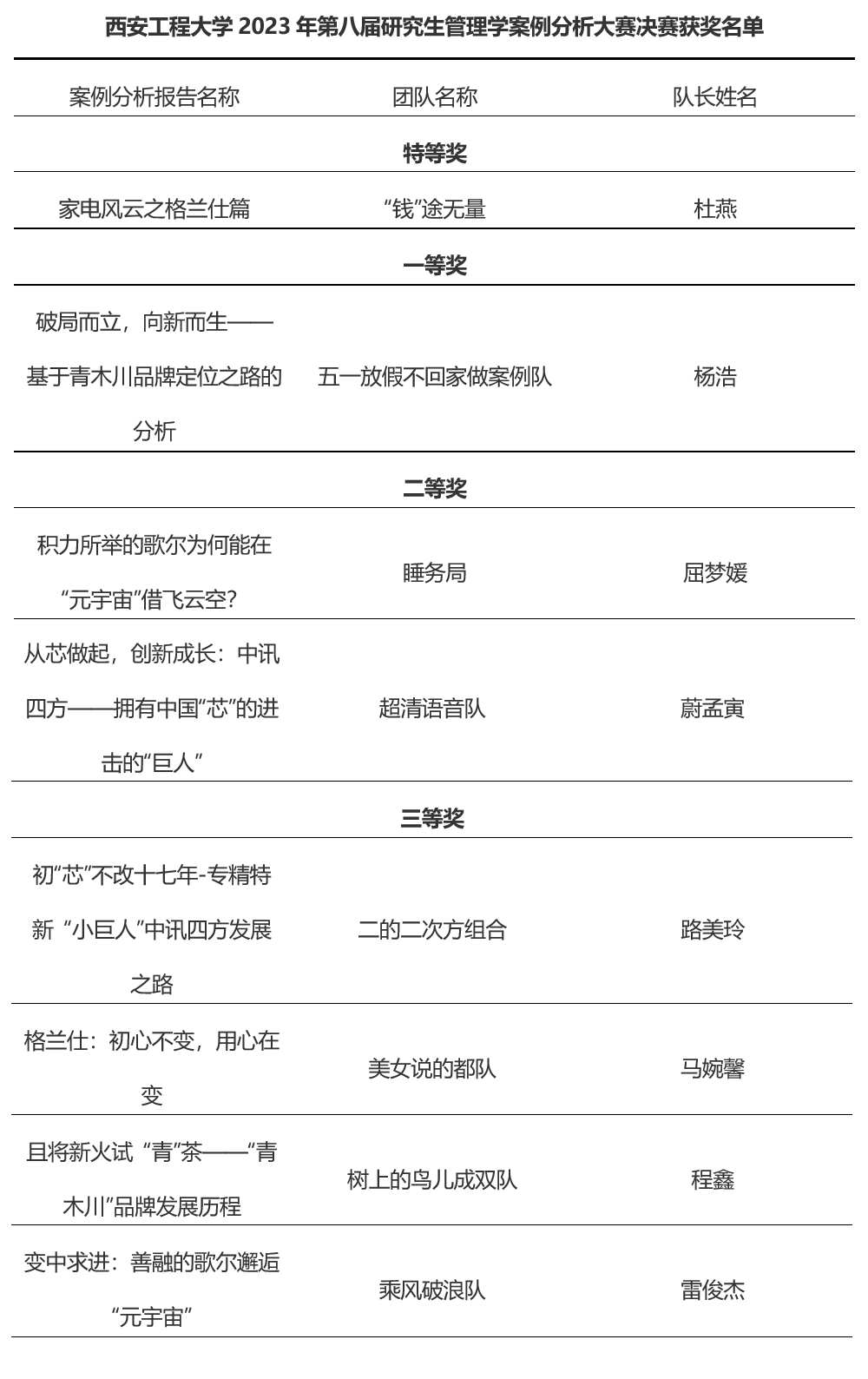 经过激烈的竞争,大赛最终评出特等奖1项,一等奖1项,二等奖2项,三等奖4项。详细获奖名单附后。
