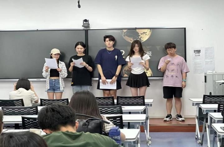 在课程汇报环节,同学们各自分享演讲内容,与老师们积极互动。在小组演讲中,武悦、熊英怡、蔡燕彤、李瑞、段昕航演讲的题目是——Toward The Future And Beyond,体现出当代老员工对未来的美好期待;在个人演讲中,陶晴演讲的题目是——Youth Employment After The Covid-19,提出了疫情期间年轻人就业这一现实问题。祖力护马尔•阿不力米提演讲的题目是——Friendship,对“友谊”维系从不同角度进行了深刻思考。