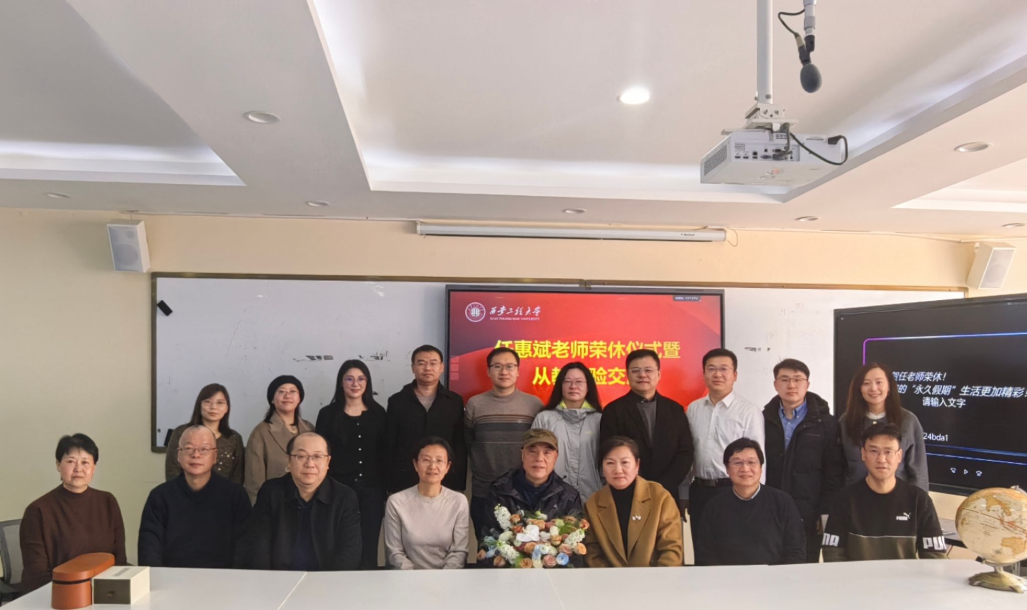 会议第一阶段,讨论2024版培养方案。邵鹏组织全系教师学习了公司发布的培养方案修订文件,并对照文件讨论核对了国际经济与贸易专业2024版培养方案的课程信息。会议第二阶段,举行任惠斌老师的荣休仪式。首先,员工代表张磊、教师代表戚斌分别从员工和同事的角度对任老师在公司产品方面的付出表达敬意。随后,任老师回顾了执教心路,抒发了对教育事业的赤诚与对公司的感情、感谢和感恩;最后,张克英经理代表公司高度肯定了任老师的贡献,要求青年教师要延续任老师的治学传统,并与全体与会者共同为任老师的退休生活送上祝福。