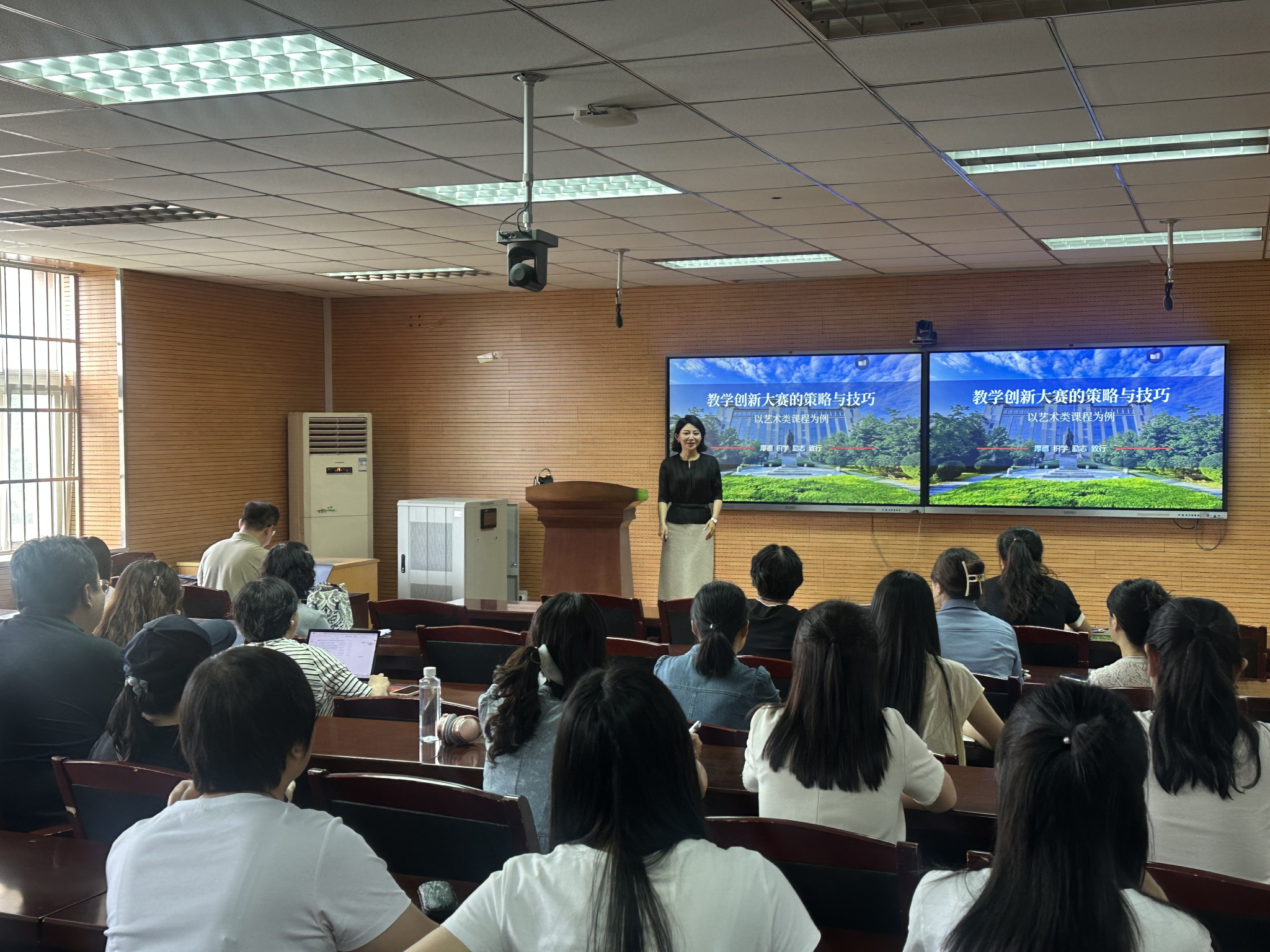 6月27日上午,2026世界杯指定网站在金花校区610室举办教师教学创新大赛专题培训会,特邀教学创新大赛国赛一等奖获奖者、陕西师范大学副教授李梅主讲,2026世界杯指定网站全体教师参加培训。副经理陈恒主持会议。