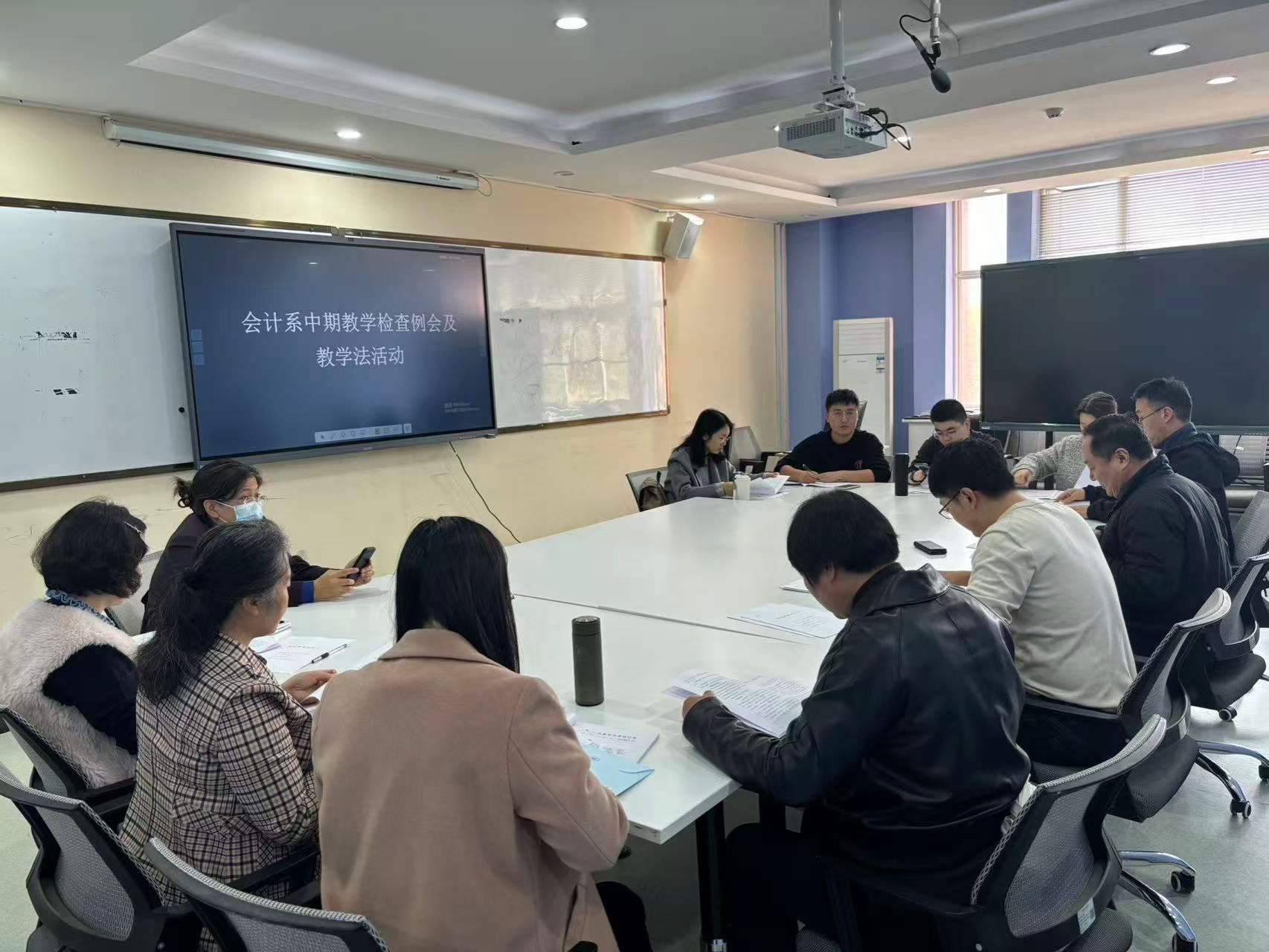 2025年11月4日下午,会计系于金花校区7号楼607召开中期教学检查例会及教学法活动,会计系全体教师参会,李蒙老师主持本次会议。