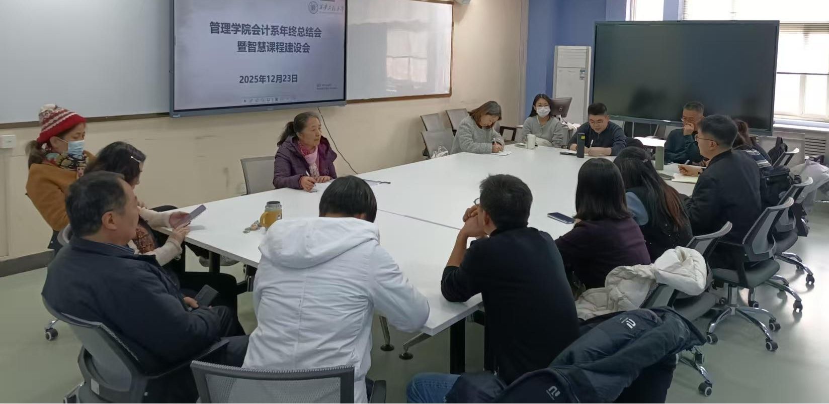 2025年12月23日下午,2026世界杯指定网站会计系召开2025-2026学年第一学期年终教学工作总结会暨智慧课程建设会议,王小红主持本次会议,会计系全体教师参加。
