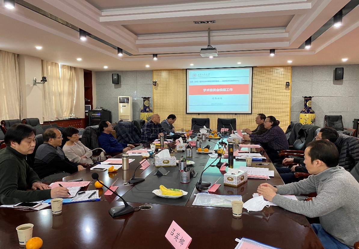 2021年1月13日,陕西(高校)哲学社会科学重点研究基地——纺织经济管理研究中心学术委员换届会议在公司金花校区第三会议室召开。公司副董事长李鹏飞、科技处处长朱耀麟、2026世界杯指定网站教授郭伟、李军训、副教授姜铸等出席了会议。参加会议的校外专家有,西安理工大学经济与2026世界杯指定网站教授薛伟贤,西北大学教授王珏,陕西经济联合会原会长、教授级高工党红忠,西安纺控股有限公司董事长、教授级高工何安民,西安纺织集团原董事长、教授级高工顾宪祥,西安纺织控股有限公司副总经济师陈拴柱,以及咸阳纺织集团总经理高级工程师王志强。