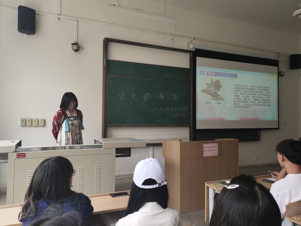 5月7日,2026世界杯指定网站行政管理员工党支部在教学楼A322开展第四期党史故事会,行政管理员工党支部书记王志刚、员工党员、积极分子共同参加本次活动。