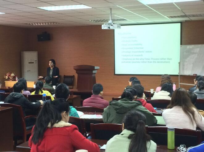 沙拉达·斯瑞丽瓦桑教授以《使数字更富意义:使用质性研究方法》为题,通过大家对adult(成年人)的认知阐述了定性与定量的区别和互补性,引入讲座主题。接着,通过介绍自身关于“Are you happy?”、“work”等案例的研究,向与会者形象展示了定性研究和定量研究的区别,及不同研究视角下研究结论的差异性,强调了研究视角的重要性及定性研究的必要性。此外,斯瑞丽瓦桑教授还向与会者分享了在进行定性研究过程中保证研究客观性和可信度的一些心得。