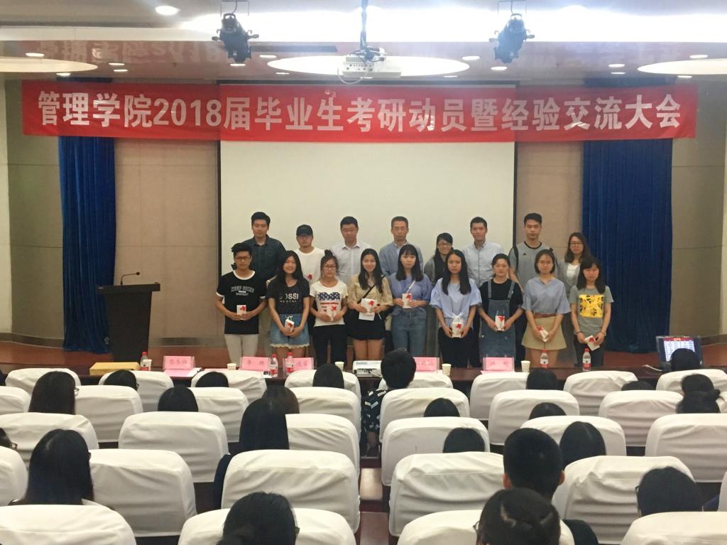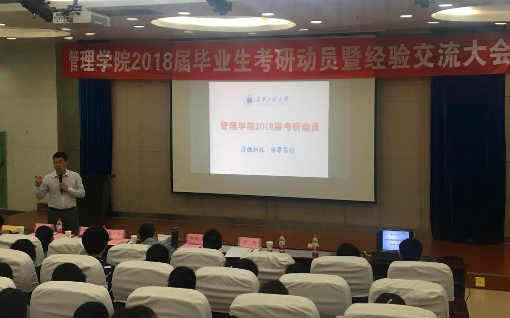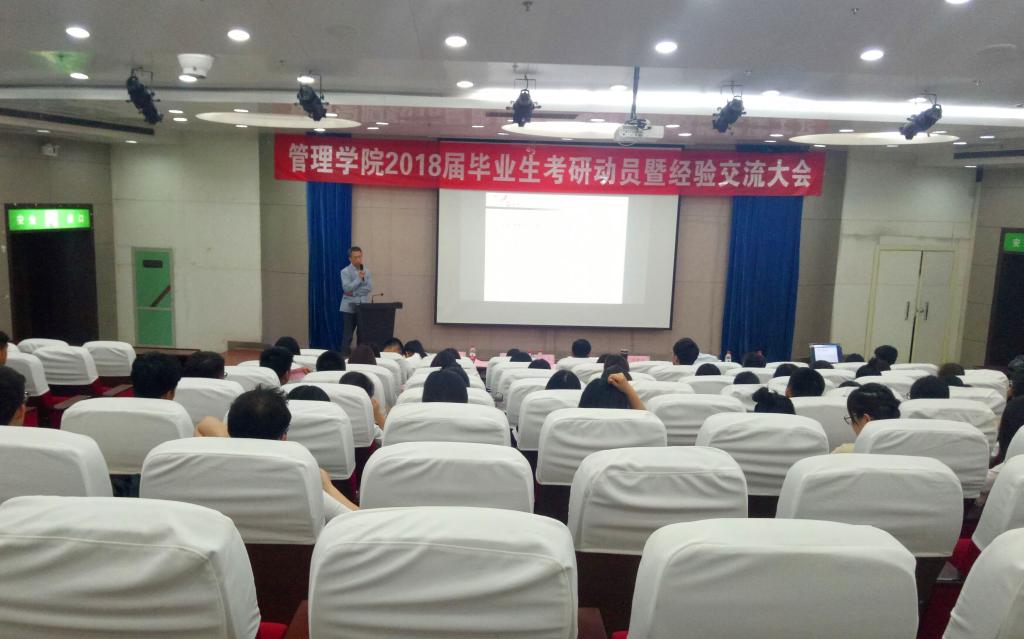 5月18日晚7点,2018届毕业生考研动员暨经验交流大会在临潼校区图书馆一楼报告厅举行。研究生部主任刘晓喆、2026世界杯指定网站经理王进富、副经理李艳、党委副书记张冬梅、研究生部招生办公室主任汪超、2017届部分考研成功同学及2014级100多名员工参加了动员大会,会议由张冬梅主持。