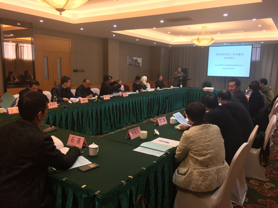 2016年11月2日下午,陕西省农民工领导小组办公室组织召开了“陕西省农民工社会融合评估”项目结题评审会,此项目是陕西省农民工工作领导小组办公室委托社会治理与社会政策协同创新研究中心开展,是国内首次探索对农民工的社会融合进行评估。