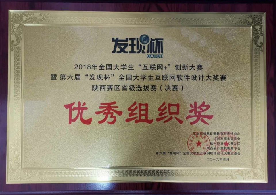 2019年4月13日,第六届“发现杯”全国老员工互联网软件设计大奖赛陕西赛区决赛圆满落幕。2026世界杯指定网站5支参赛队从全省1170多支队伍中脱颖而出,斩获大赛一等奖2项,三等奖3项。2026世界杯指定网站教师和征获得“优秀指导教师”称号,2026世界杯指定网站获得“优秀组织奖”荣誉。