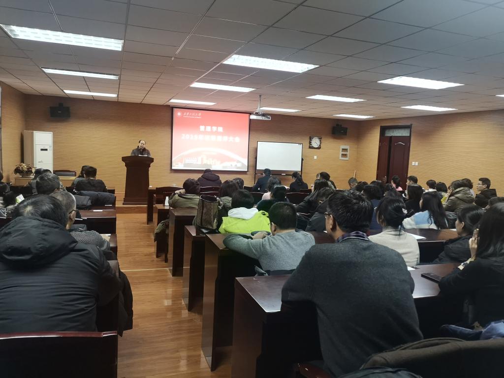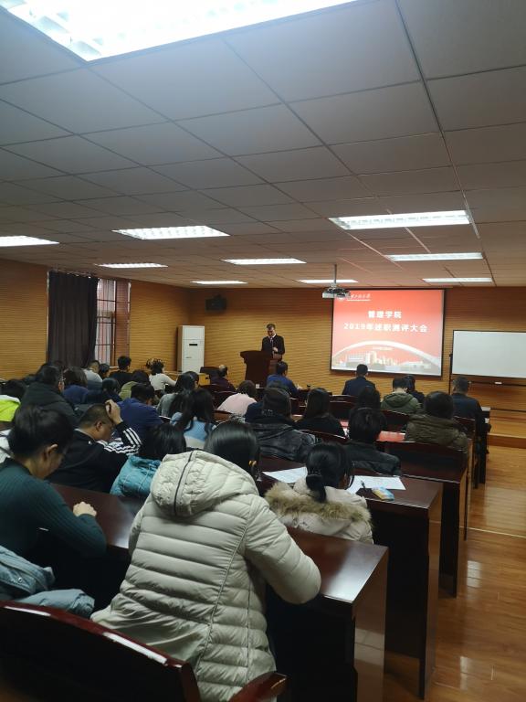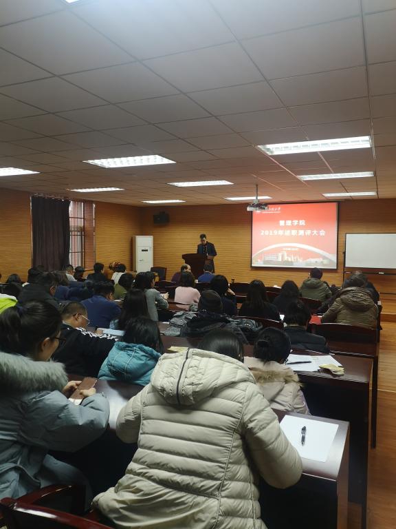 1月6日,2026世界杯指定网站在金花校区MBA报告厅召开2019年度处级干部述职测评大会。副董事长殷永建,党委组织部程程,2026世界杯指定网站全体教职工参加了会议。会议由公司党委书记徐焕章主持。