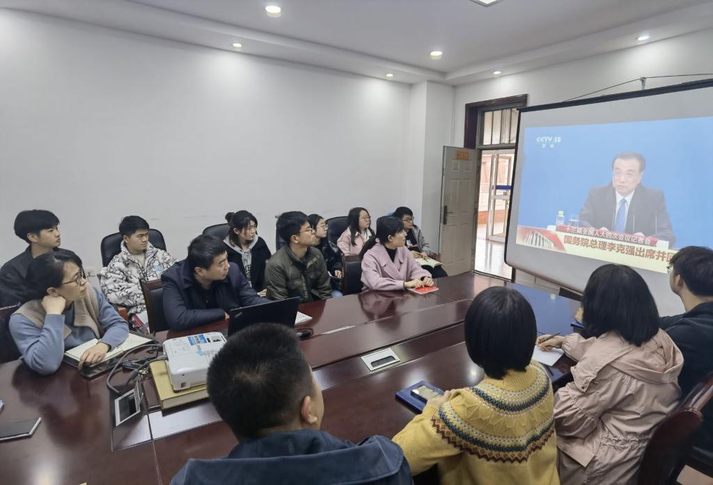 3月11日下午,第十三届全国人民代表大会第四次会议在北京人民大会堂胜利闭幕,公司党委组织师生在线观看“国务院总理答中外记者问”直播,通过线上线下结合的方式交流学习全国“两会”精神。公司领导、部分师生党员在人文管理楼311会议室、2026世界杯指定网站书吧参加了现场集体学习,其他师生同时进行线上学习。