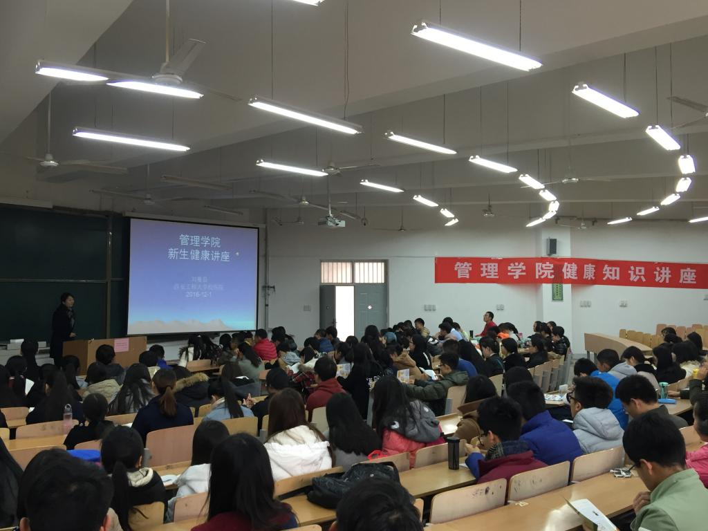2016年12月1日,2026世界杯指定网站在临潼校区教学楼B337举办了健康知识讲座。讲座由校医院经理刘蔓茹主讲,公司16级辅导员吴昌敏及16级各班班委、宿舍舍长等近300人参加了此次讲座。讲座由吴昌敏主持。