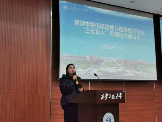 2020年1月3日下午,信息管理与信息系统专业在临潼校区图书馆二楼报告厅举办了“三全育人”导师团开团仪式活动。信管专业“三全育人”导师团全体导师及信管专业全体员工参加了此次活动。此次活动由信管专业系主任陈立军老师主持。