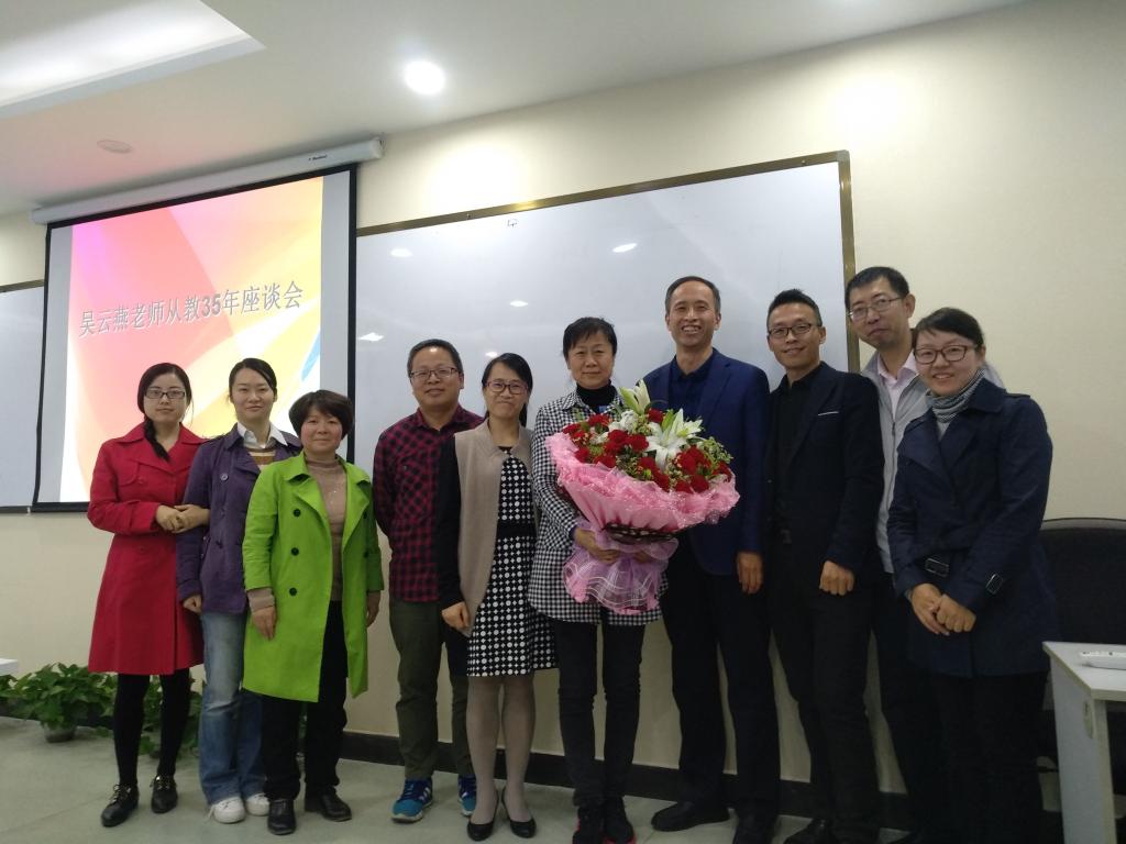 座谈会结束时,与会人员与吴云燕老师合影留念,热烈而真诚的荣休座谈活动为吴云燕老师的教育教员工涯画上了圆满的句号。祝愿吴云燕老师芳华永驻,祝愿她退休后的生活多姿多彩,顺心顺意!